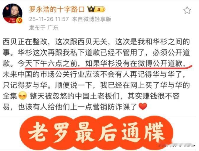 今日最大笑料哈哈哈! 且看公关公司如何给自己公关!!! 本来西贝的事情已经尘埃落定了, 华与华居然又出来搞事情! 华与华这是怕西贝没死透吗?本来事情已经逐渐冷却了,它却又主动出来搞事情。这下可好,一不小心又刺激到了爱较真的罗永浩。 而且罗永浩给的时间就是今天六点,如果不道歉,他就要公布录音。 马上就要六点,我真是得被笑晕,不知道贾国龙现在有没有后悔请了华与华。 还真是应了那句话,贤妻夫祸少,不贤百病生啊!