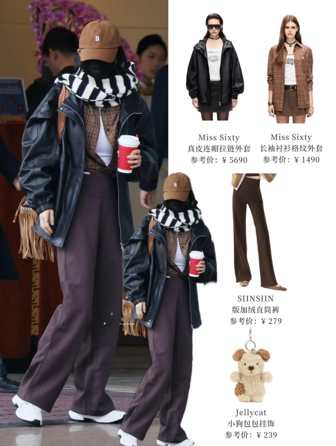 杨幂好会穿搭 杨幂私服 今天杨幂一身的代言,全身上下都是广告位(衣服外套misssixty、裤子siinsiin、小狗挂件jellycat、鞋子思加图、拿着库迪咖啡去机场的座驾也是享界S9T的!!