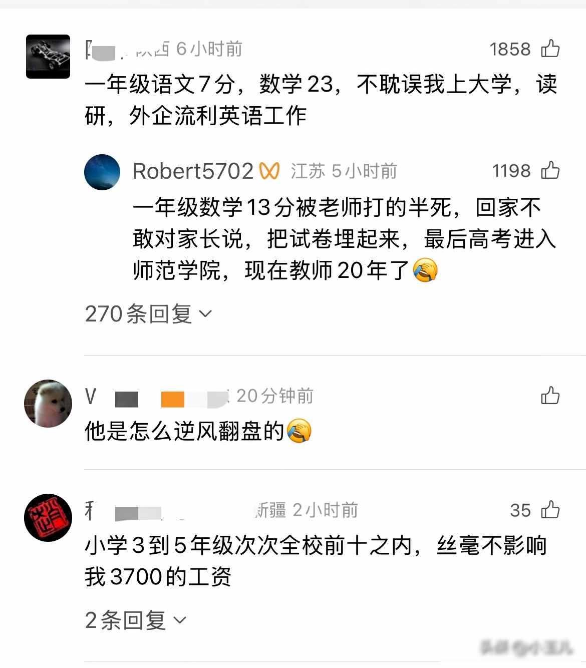 家长不要焦虑了!广东,女孩在收拾房子时,居然意外发现哥哥1999年的小学数学试卷,他只考了57.5分,谁能想到,多年之后哥哥考上了211高校,网友:“我对孩子又有信心了,真是学渣的逆袭!” 前几天,广东一位家长收拾老物件,翻出哥哥1999年的数学试卷,卷面分57.5,字迹都快认不出来了,谁也没想到,这分数的主人,如今成了重点大学毕业生,还在单位里挑大梁,这事传到网上,评论区就吵开了,有人说这分数搁现在得补课,也有人直接说,原来学霸小时候也考不及格啊。 其实想想也正常,我初中同学小王,当年总被家长骂,中考连重点高中都没考上,现在搞编程,日子过得挺不错,工资比不少重点大学毕业生还高,小时候成绩好,真不一定管用,我邻居小孩,小学拿过奥数奖,现在上班连Excel公式都弄不清,家长整天愁孩子这科差那科弱,可孩子长成,哪能按一个时间表来呢。 现在想想,我小学数学还考过三次不及格,我爸倒不着急,说考试就是看看哪儿没学会,没及格就再学一遍,这大概也是我后来做数据能沉得住气的原因,底子薄的时候反而把耐心磨出来了,与其老盯着分数发愁,不如看看孩子对啥真有兴趣,该玩的时候就让他去玩,该认真时他自然会认真起来。 这事儿让我想起小区李奶奶说的,庄稼长得快不等于熟得透,稻穗低着头才真是熟了,孩子学习也一样,急不得,现在家长总怕孩子起步晚,可人生是长跑,后来追上的多了去了,别天天算补习班、特长班排得满不满,先问问孩子今天高不高兴,这才是能长久的事。
