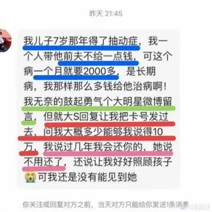 时隔9个月,再一次为大S的去世感到难过遗憾,那么美好善良的人去走的那么匆忙…… 面对素不相识的人私信求助,她不问别的,直接要卡号先转30万救白血病女孩,她生前也是默默无闻做了很多善事,却从来不会主动提起,也不让受资助的家庭提起,也不需要他们还。 她连别人的孩子都爱,却被前婆婆一家造谣不爱自己的孩子,一个美好善良的人,却遭遇了史无前例的网爆,可就算处于舆论风暴中,她也从来没有把这些事情说出来。 或许在她看来,帮助别人就是一件寻常事,不需要拿出来宣扬,她真正做到了但行好事,莫问前程,善良的大S善良的珊珊,总是低调不求回报的。 她走了 很多人才知道她默默做了很多善事,太意难平了。