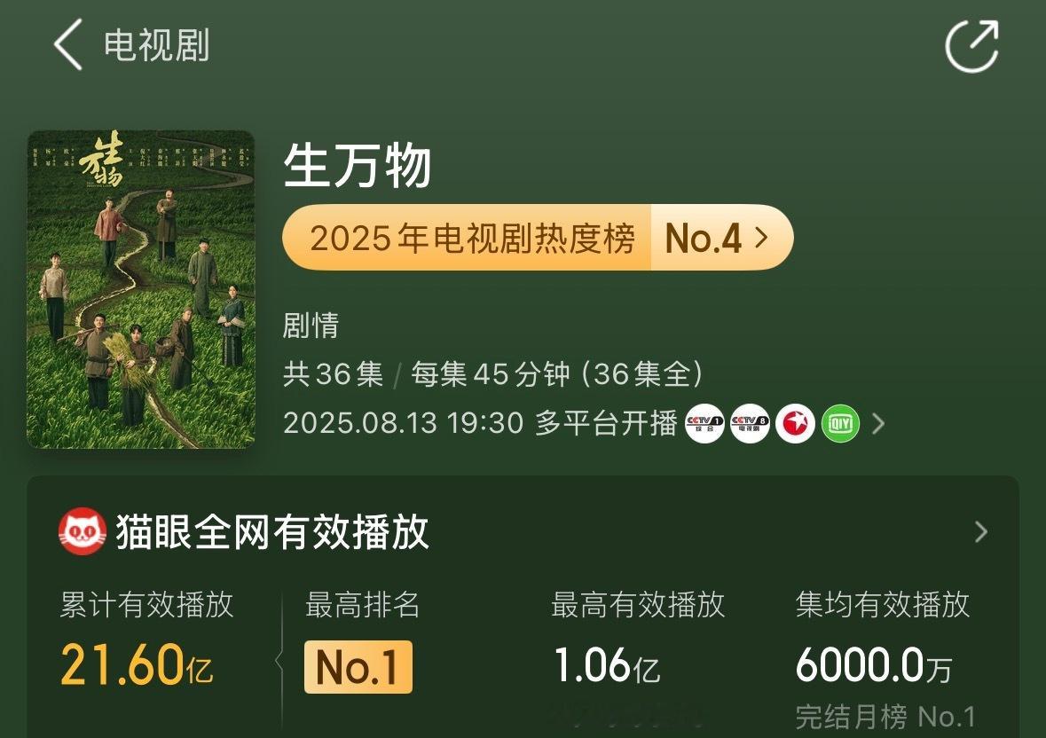 杨幂生万物 《生万物》猫眼集均有效播放量突破6000万👏