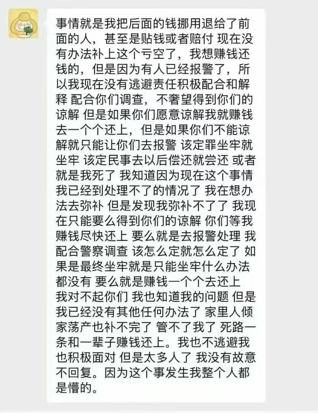 严浩翔前大站站姐涅槃卷粉丝400w跑路! 这位站姐,当粉牛,出售各种票 包括但不限于演唱会 外务 首映 群演等…… 朋友圈及各种社交平台营造富二代人设,更有知名狗粉为其发博声称人家真的有钱。前期也真的出过首映,外务等门票,声称自己有内部人脉且消息灵通,获得了特别多人的信任,所以后期转账人数激增,导致目前涉案金额巨大。 今日在朋友圈声称资金链断裂,无法还款,彻底爆雷,她要求在她那里买过东西的人去报警,让警察找她。 看有人爆料她基本没有什么渠道,因为需要资金追星追私,所以以这种渠道疯狂敛财满足私人欲望,再从黄牛手里收票来博取大家信任,让大量粉丝提前购买转钱!!! 这些追星的人这么疯狂吗?为了追星不择手段了属于是,连同担的钱都骗啊,无论粉籍,把钱交到陌生人手上之前要三思啊!