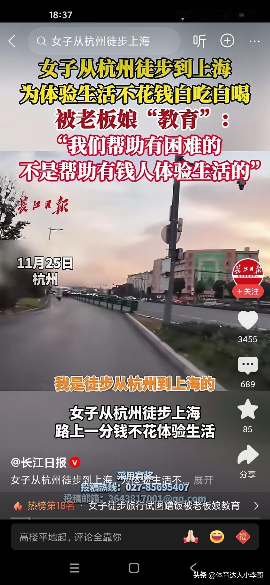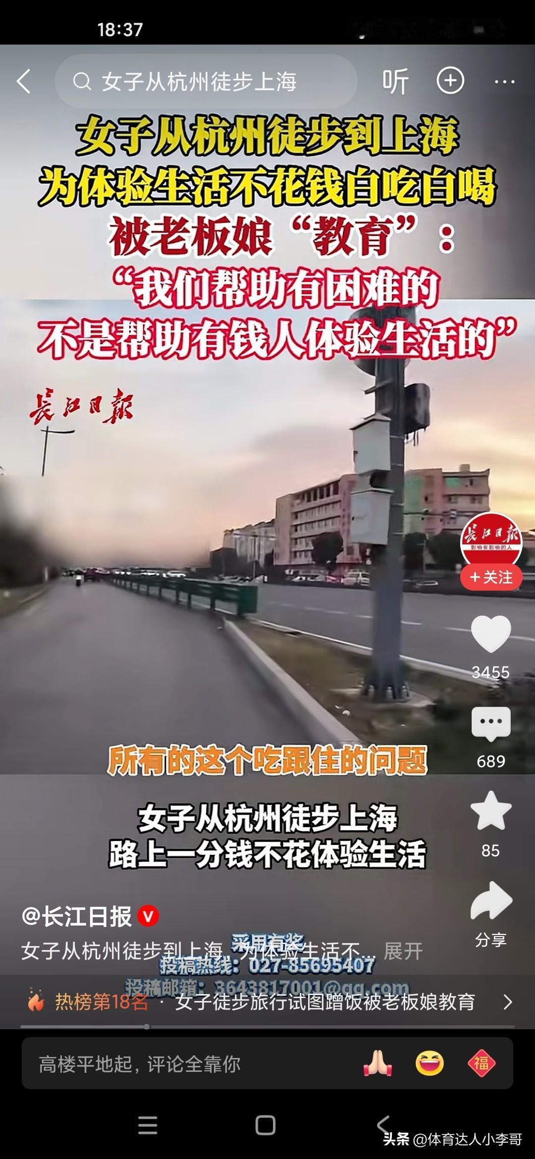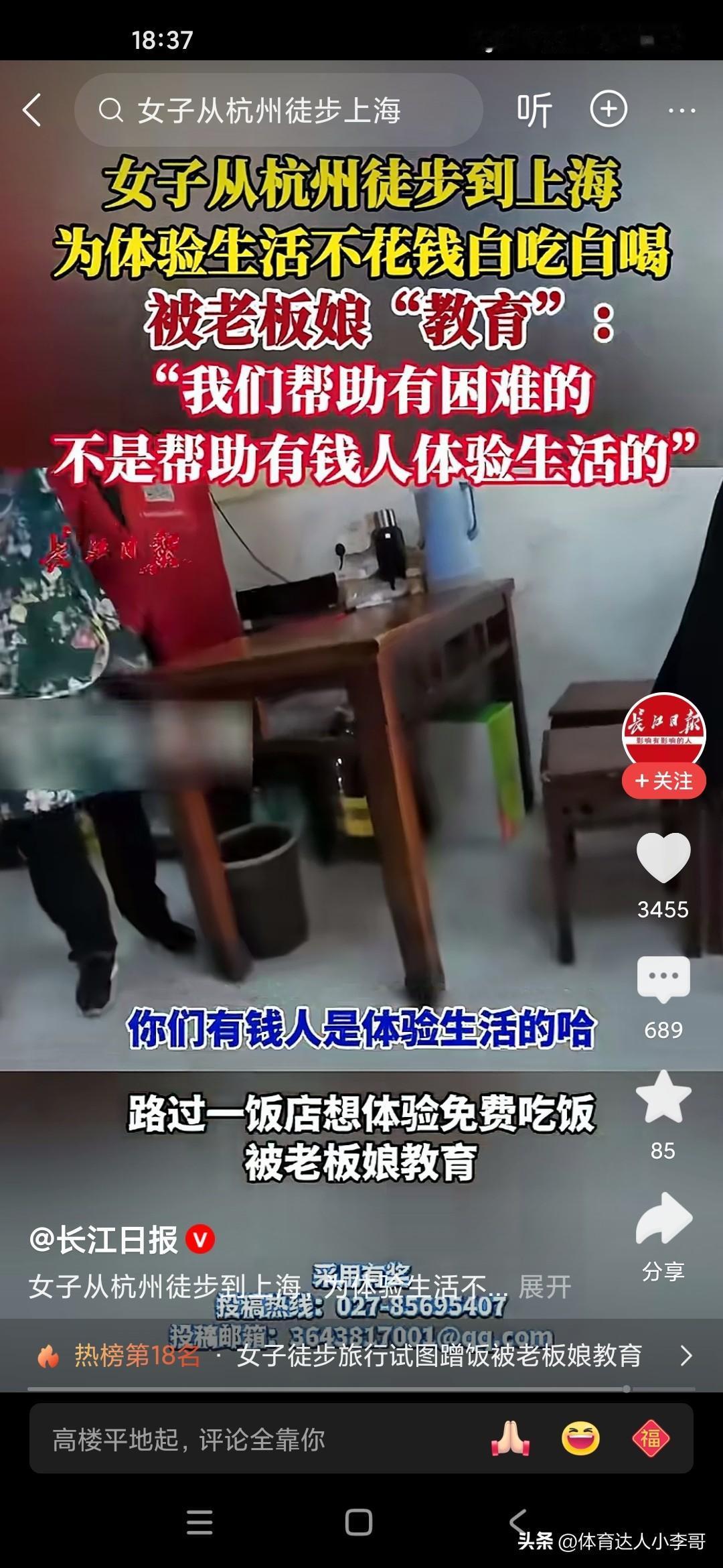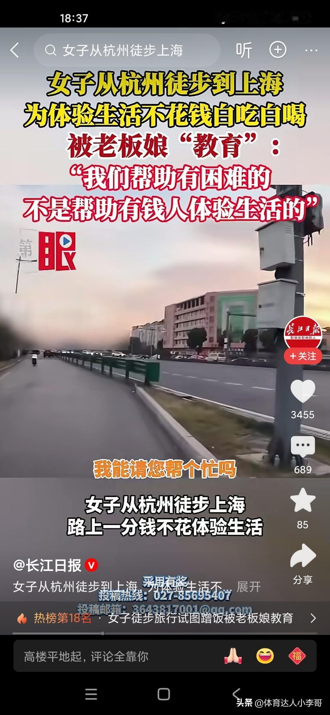 你这是吃饱撑的,你已经这么有钱了,一顿饭的饭钱都不愿意给,我们只是帮助那些真正困难的,只是帮助那些要饭的,或者说是钱包丢了或者说是失业的真的有困难的,撑不下去的人,缺一顿饭的我们可以帮你,对于你们这些有钱人来体验生活的,连一顿饭都不愿意给吗?这个老板娘把这个徒步者怼的哑口无言,她本来是来体验生活的,结果被这个老板娘给上了一课,我觉得她怼的挺好的,有些人是吃饱没事干,非要去体验一下生活,她自己有钱就是不愿意掏,非要体验乞丐的生活,她还不如不说实情呢,完全可以说自己遇到困难了,钱包被偷了,或者说是没有找到工作的,不要穿的那么冠冕堂皇,也许这个老板娘还会管她们一顿饭,提供她一宿住宿,也可能这个餐馆的老板娘遇到这样的事情太多了早就看不惯了,烦啦!