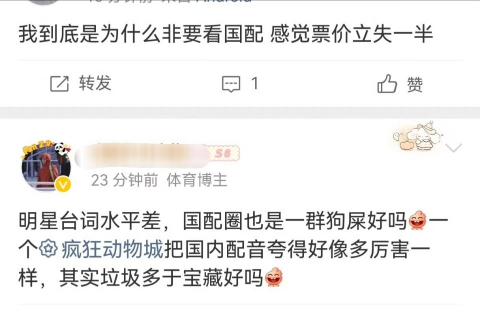 疯狂动物城的国语配音被吐槽其实这种大热的角色,应该让幕后配音演员来配的,知道是演