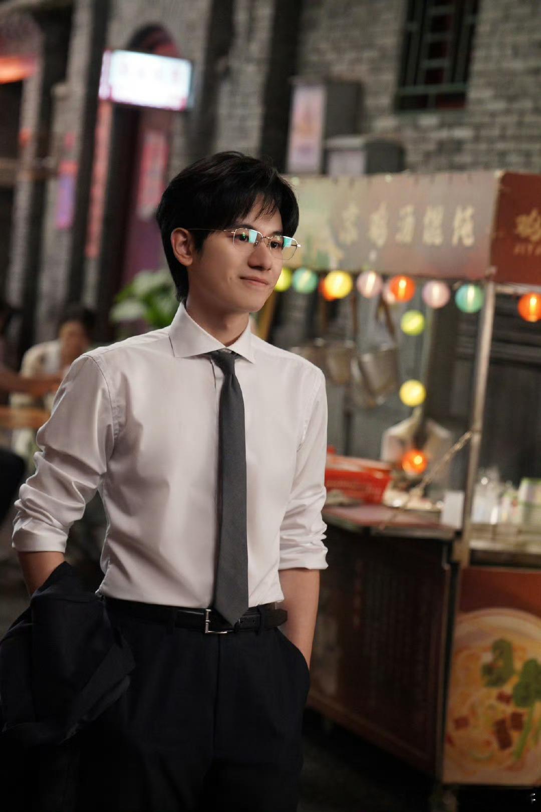 网友偶遇胡先煦拍摄深圳街头捕捉到胡先煦营业瞬间!白衬衫配领带的造型鲨疯了,自带霸