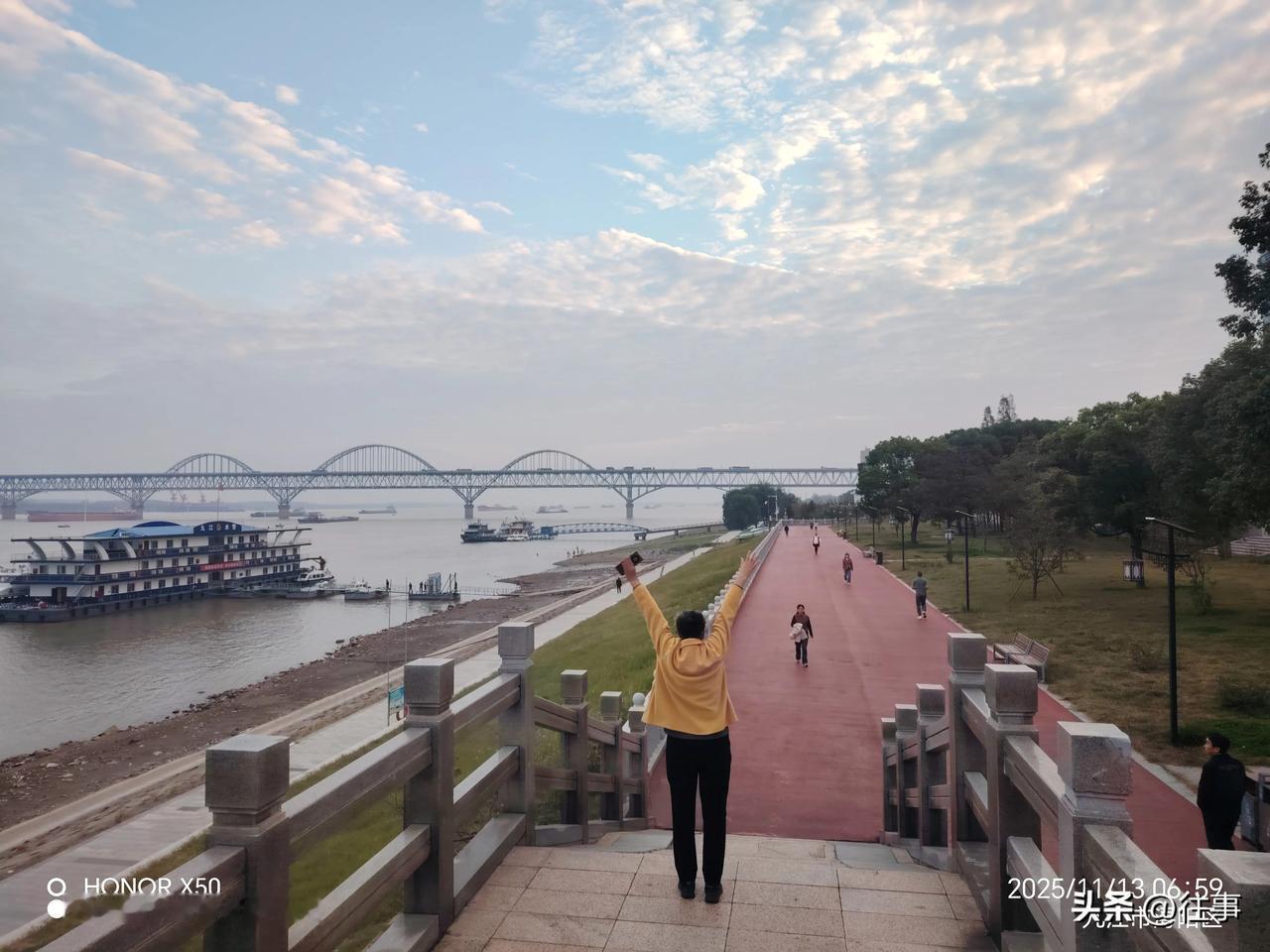 我的今日状态:🏝️旅行度假 我这里的天气:☀️晴天11月13日长江岸边晨练打卡