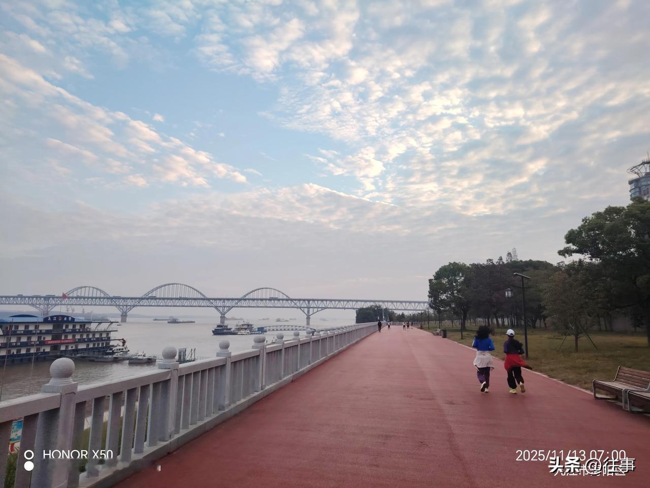 我的今日状态:🏝️旅行度假 我这里的天气:☀️晴天11月13日长江岸边晨练打卡