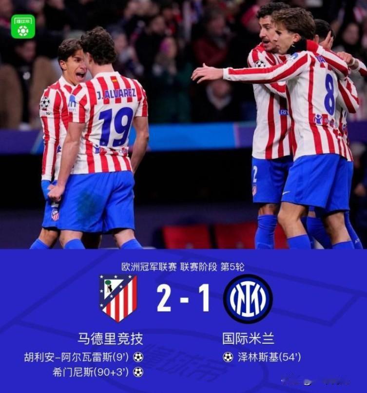 悲催,真该反思了!欧冠第5轮国际米兰客场被绝杀以1:2不敌马德里竞技,终结欧冠的