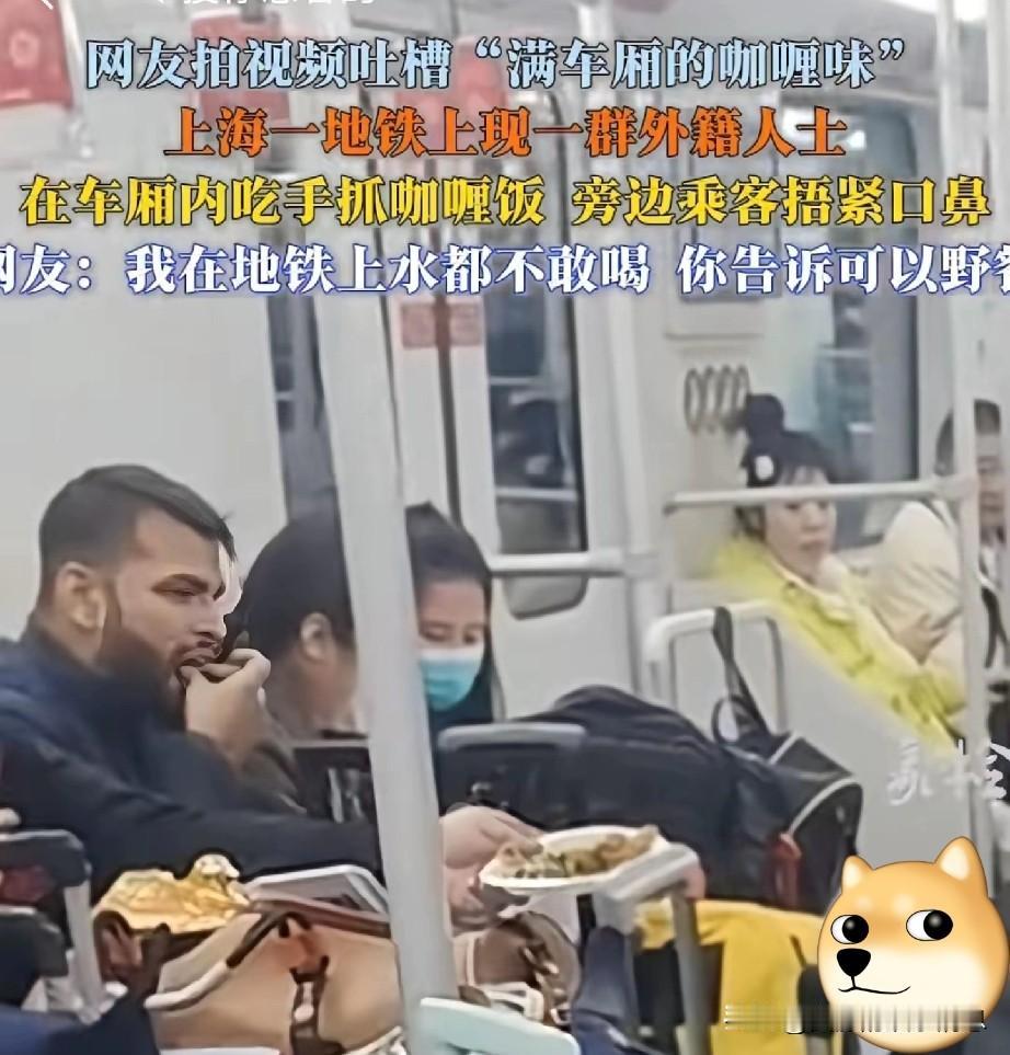 上海地铁上吃东西是常识,但印度人是真不知情还是装不知情呢? 这次甚至那一个车厢内都是印度人,吃咖喱味的块状食物,味道刺鼻,网友质疑地铁保安为何不管,难道印度人就不受国内法律约束? 义乌零元购事件还未落下帷幕,上海地铁又出现这种情况,不是我们因为几个印度人,就抹黑整个印度。可事实就摆在眼前。他们的素质与做出来的事情。只能是让我们反感。