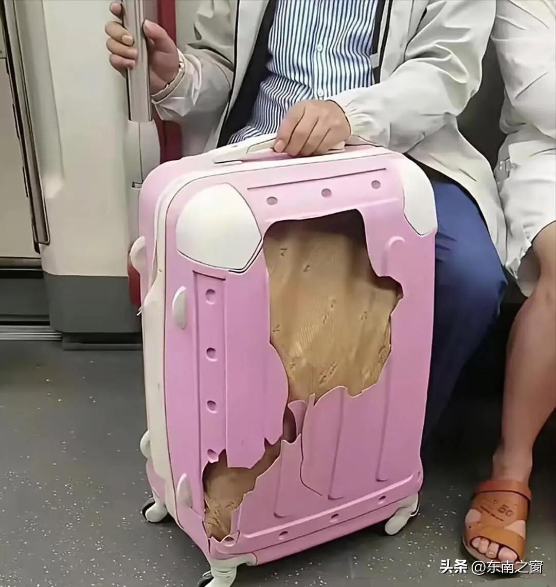 在地铁上碰到的,刷着手机,猛然间抬头,却发现了一个粉红色的忧伤,原以为这是今年最新款的叙利亚风格,忍不住多看了两眼!可发现不对呀,你细看,再细看,箱子里装的是个类似麻袋的东西,况且是个五大三粗的男人在拿着?细思极恐,有没有人知道这旻怎么回事吗?