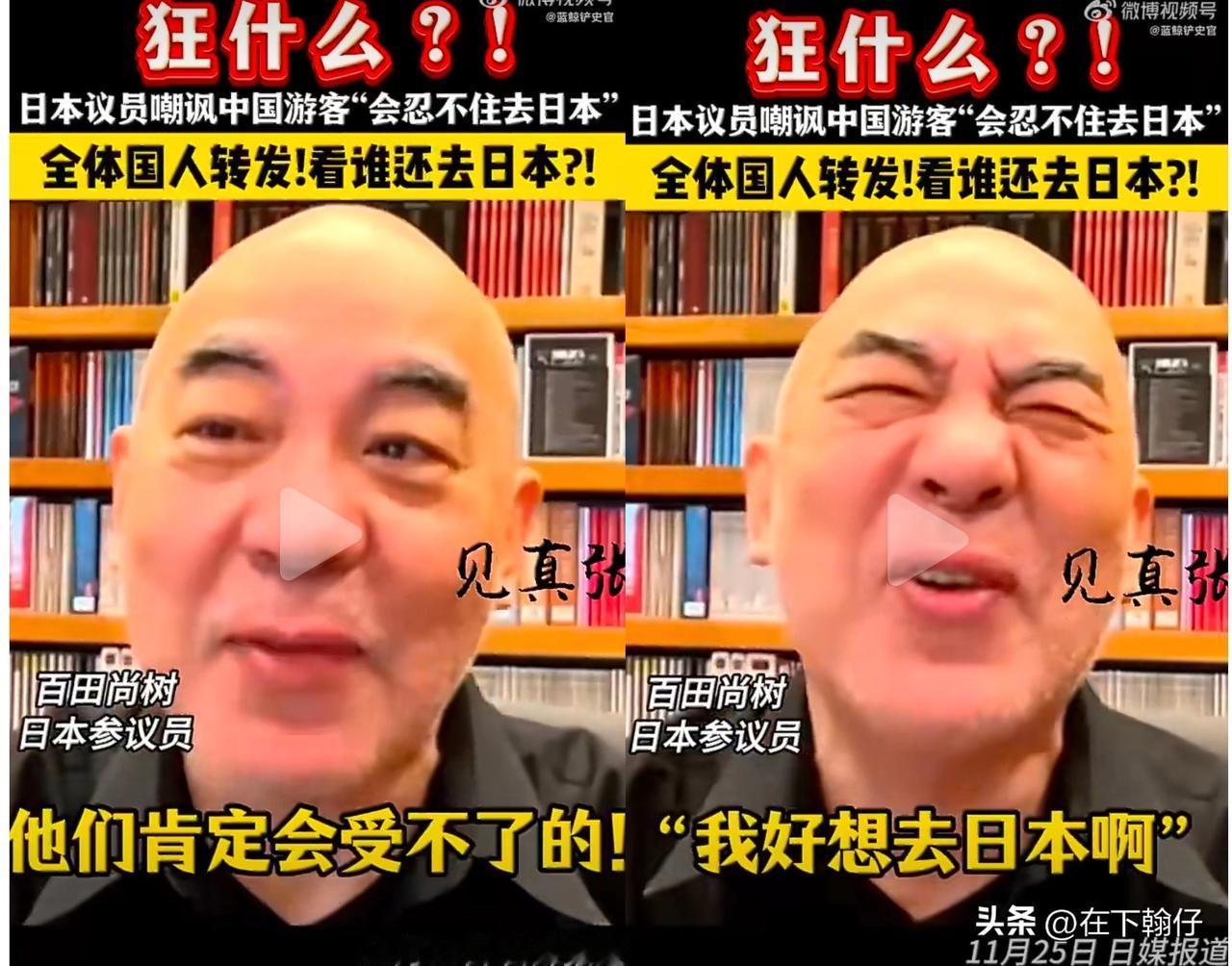 日本议员嘲讽中国游客:“让中国人别来日本旅游?他们肯定受不了的,寒假和春节马上到了,他们会忍不住去日本”。 这个光头好嚣张, 他的言论他的语气充满了对一个国家及其人民的蔑视,将个别现象上升为对整个民族的刻板印象。 你知道最可气的是什么吗? 最可气的是他说的是对的,一小部分喜欢去日本玩的人就是这样的,也不是第一次发生这样的事情了。就算短时间没人去,事情淡化了一样大把大把的人去。 我觉得这个节骨眼上还是应该不去的。个人的消费喜好固然值得尊重,但在民族尊严受到公然的、官方的挑衅时,暂时的克制和集体的选择,所展现出的力量和风骨,远比一次旅行带来的快乐更为深远和重要。