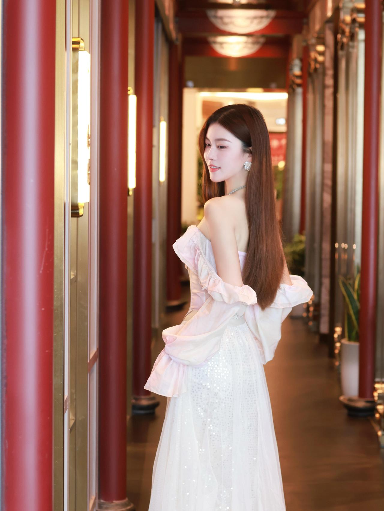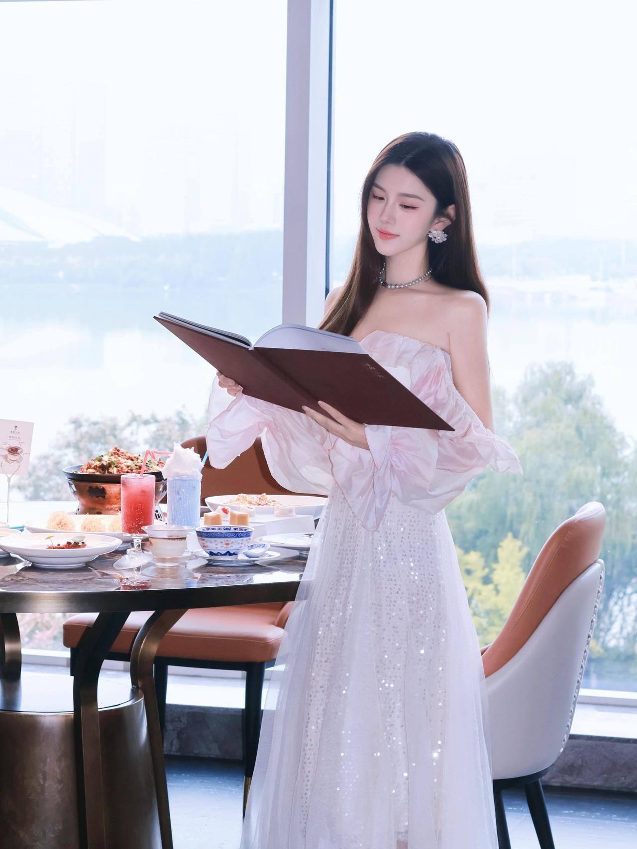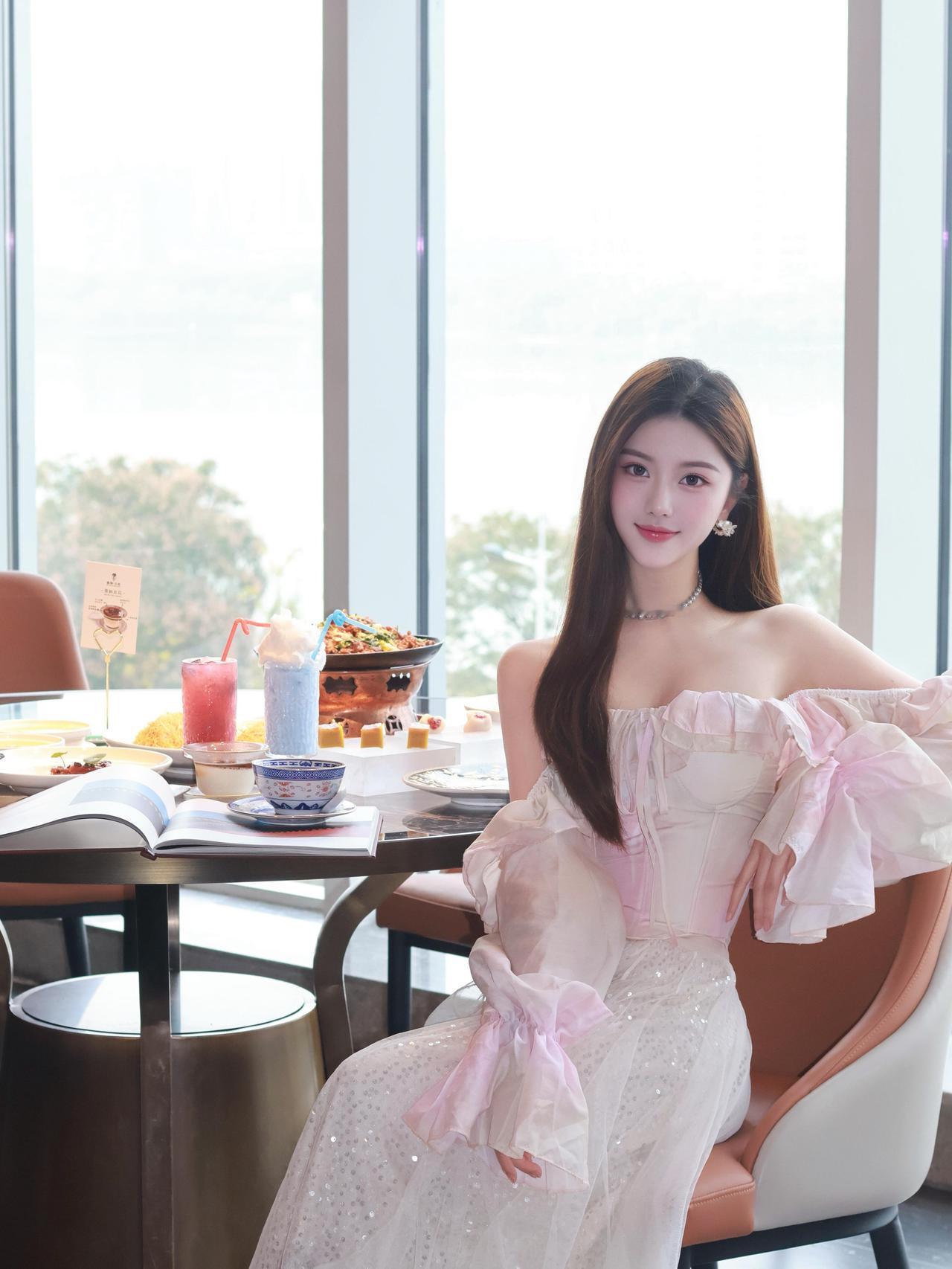 也是吃上漂亮饭了, 和今天穿的裙子很搭配。