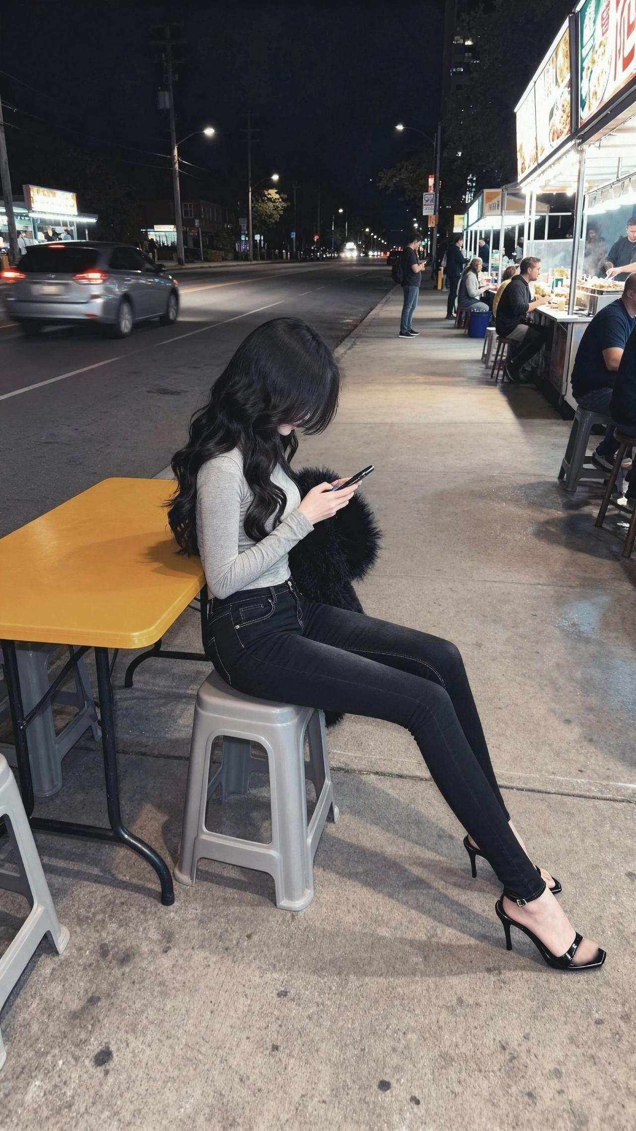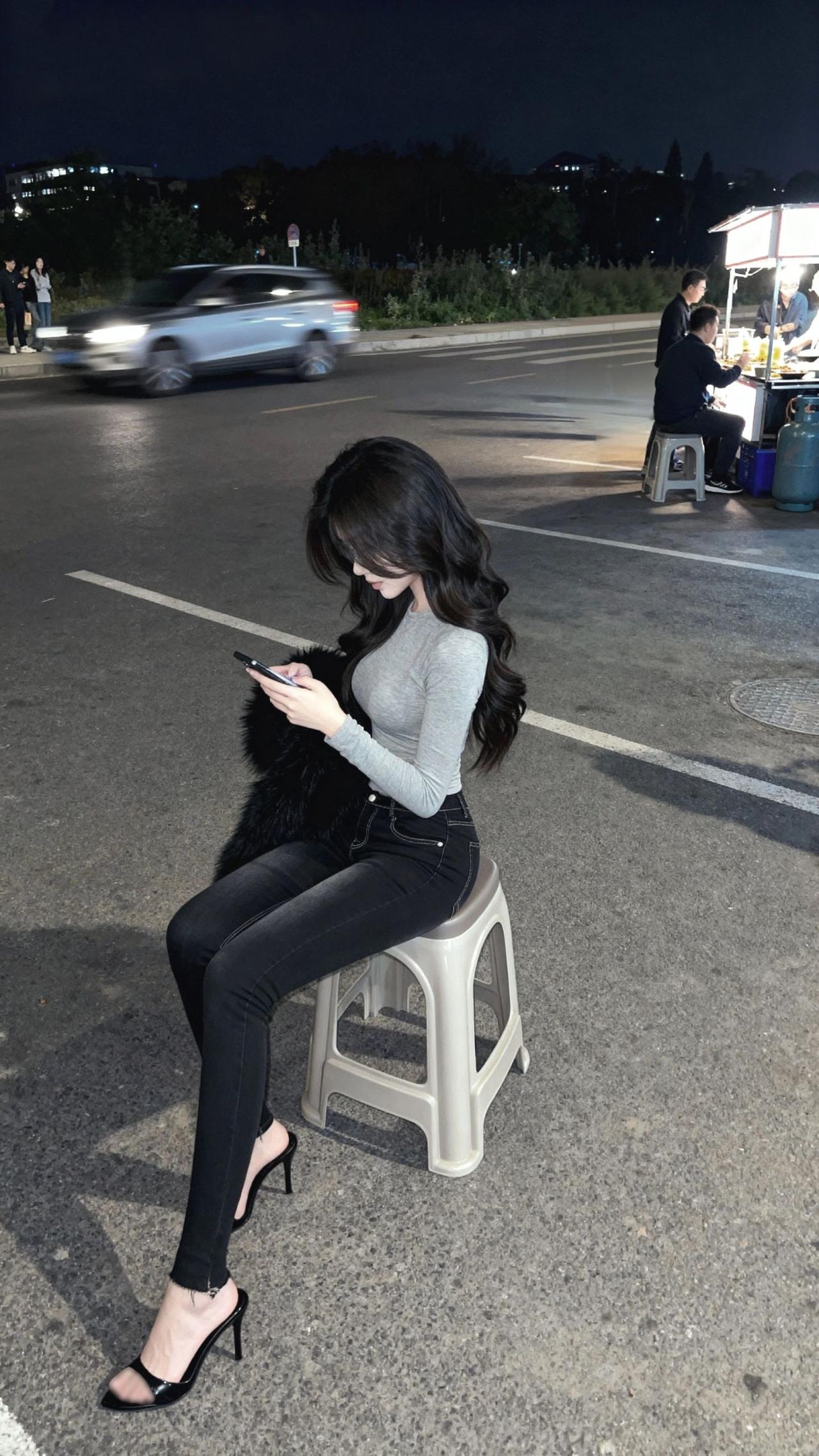 今天的厚黑没配平底鞋,而是气质小高跟。