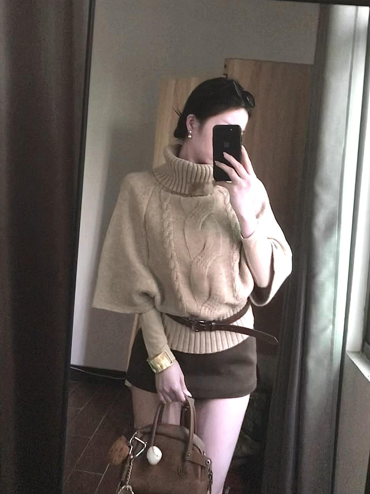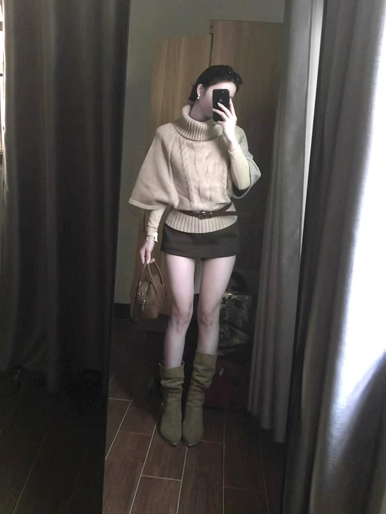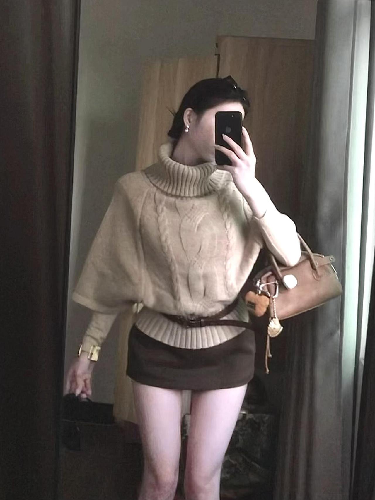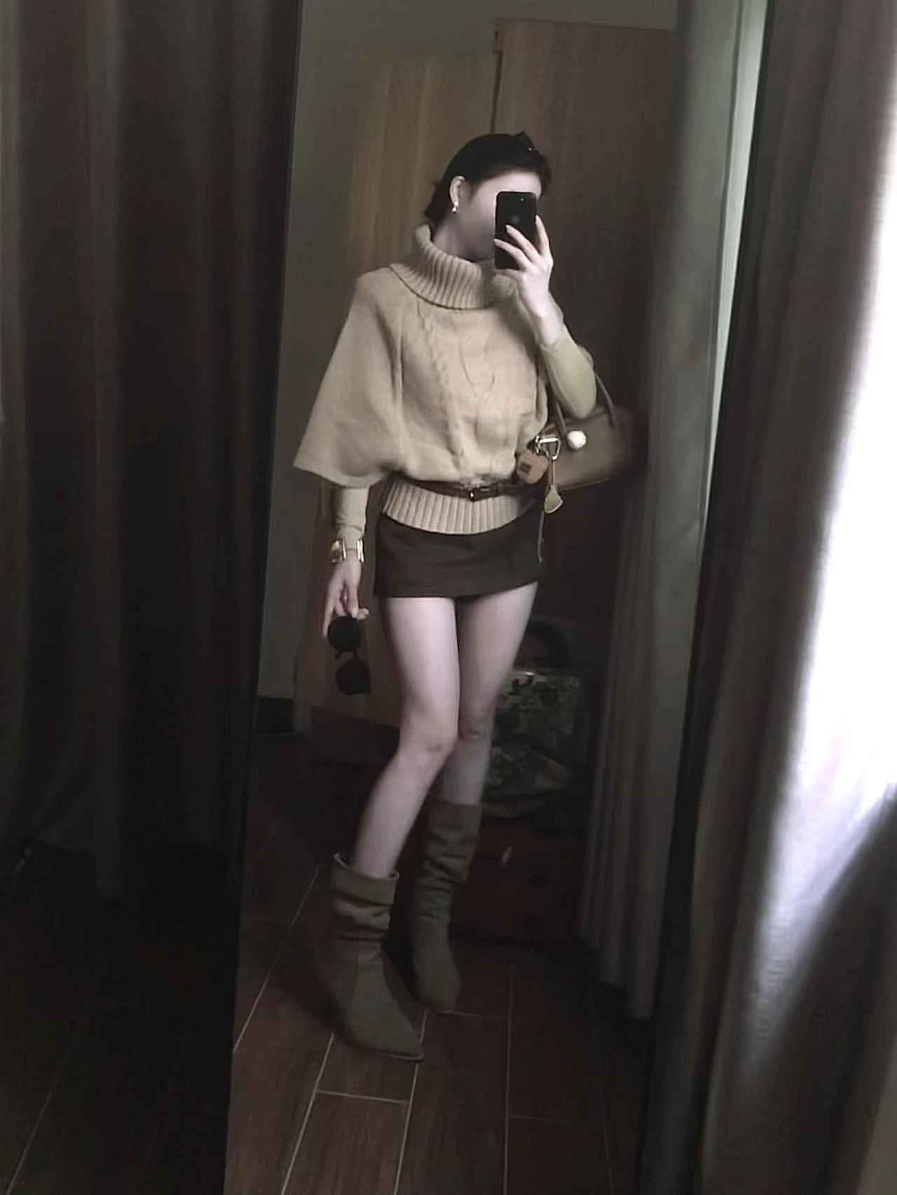 秋日穿搭指南棕色高领毛衣+长裙温暖又时尚