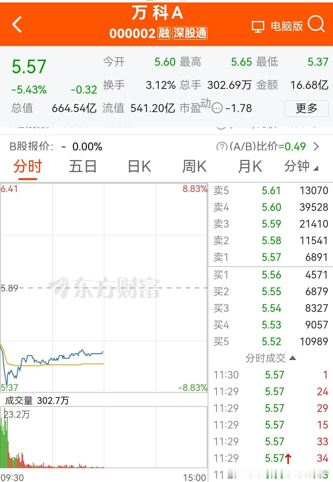 万科低至5.37