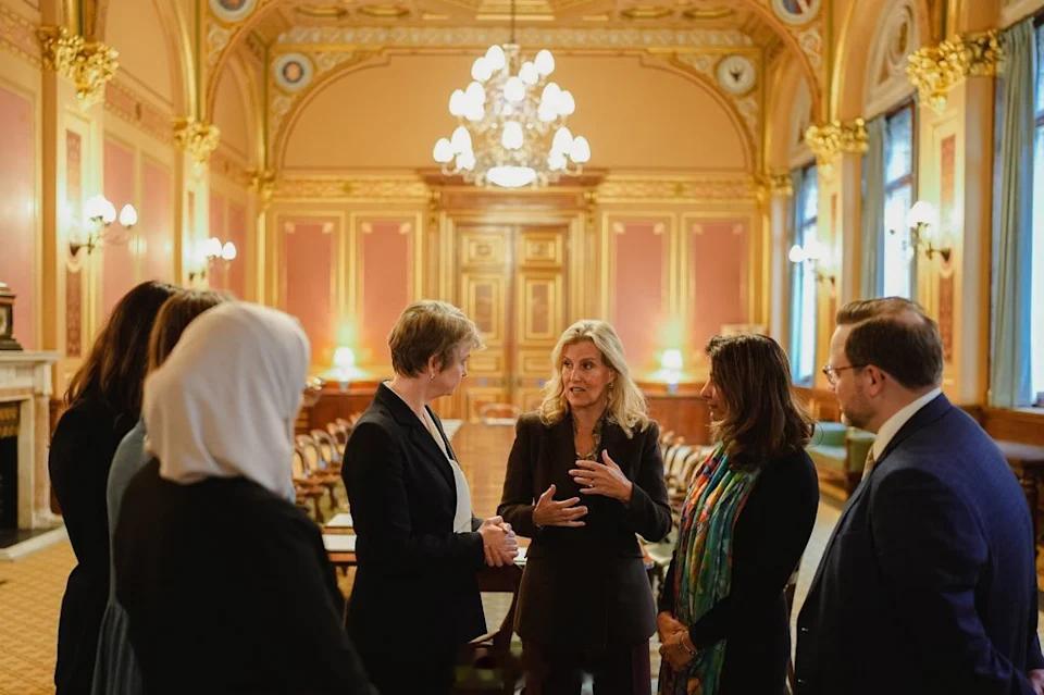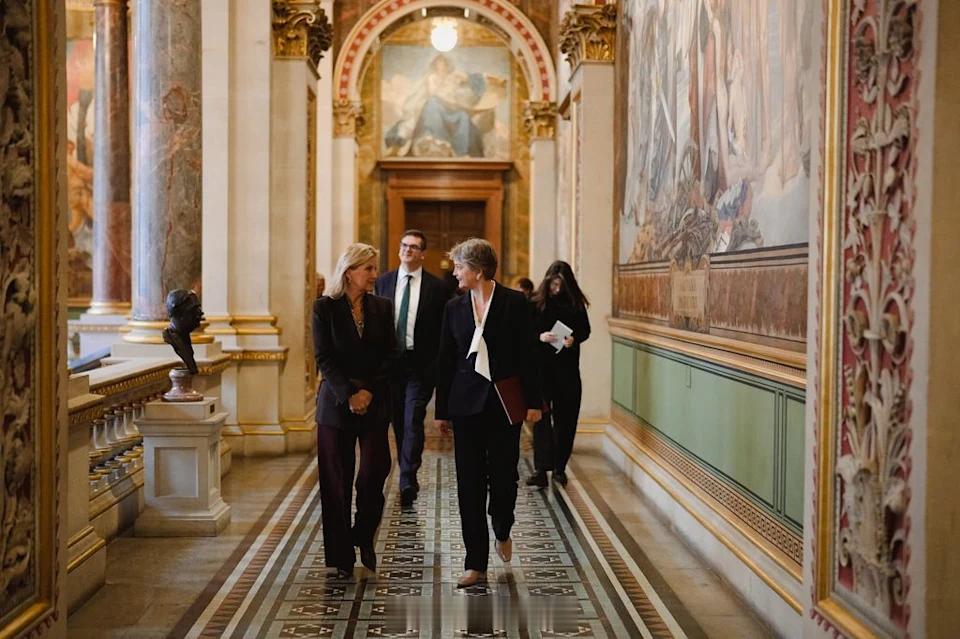 英国王室 2025年11月24日,爱丁堡公爵夫人苏菲在伦敦外交发展办公室出席活动,并受到外交大臣Yvette Cooper欢迎,以纪念联合国安理会第1325号决议《妇女、和平与安全》通过2️⃣5️⃣周年。