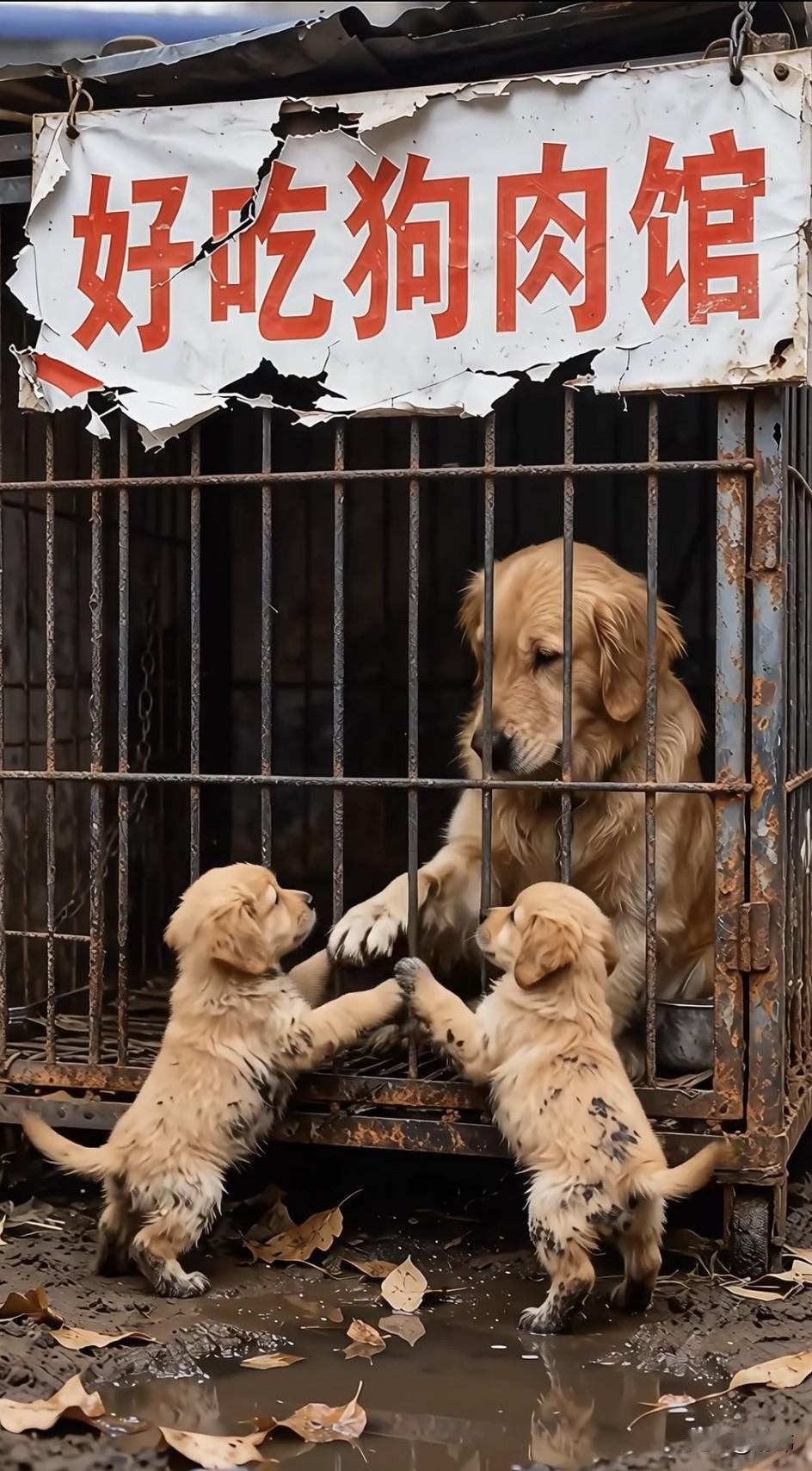 泪目了!这天一位大哥和同事一起去一家好吃狗肉馆吃晚饭,当他们吃完在院子里散步的时候,看到令人伤感的一幕,一只狗妈妈被关在一个铁笼里,脖子上还拴着铁链,它的两只狗宝宝隔着笼子和妈妈在温存,狗宝宝不停地哭泣,而狗妈妈也不停地在哀嚎。 善良的大哥顿时看的非常难受,实在太残忍了,他顿时心生怜悯,于是就决定救下可怜的狗狗一家,他找到老板买下了这只狗妈妈和两只可怜的狗狗,之后就带它们去了宠物医院检查并打了疫苗,然后就带回去安顿了,相信在他的照顾下,狗狗一家一定会生活的很好。