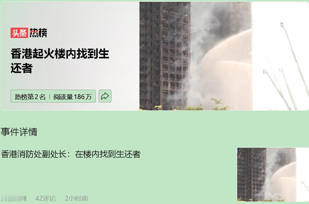 那个彩色方格地图,像弹幕一样在手机上疯狂刷屏。 红色是求救,绿色是平安。大埔宏福苑的邻居们,在那场五级大火里,硬生生用Google表格搭起了一张"救命网"。90岁老人失联,幼童独困家中,27楼的格子已经变灰——44条人命,就这么没了。 这是最扎心的现实:火是下午2点51分起的,11分钟后消防员就到了。但火警连跳五级,从三级到五级只用了32分钟。啥概念?五级火在香港意味着"彻底失控"。 为啥这么难救? 因为楼太老了,加上脚手架太要命。 宏福苑40多年楼龄,外墙正维修,八栋楼全被竹棚架包着。竹子加尼龙网,一点就着,火顺着这"大烟囱"往上窜。那天还刮强风,风助火势,直接炸了棚。消防员想从里面接水?管道早被烧坏了。云梯?最高到17层,可这是31层的楼,100多米高。 有人问:香港为啥还在用竹脚手架?我只想说,这事儿破防了——内地2021年就禁了,香港还在用,因为便宜、灵活、街道窄。金属棚和竹棚差价好几倍,成本卡在那。去年9月就有居民投诉棚网阻燃问题,劳工处回:风险低,没标准。 更傻眼的是,有栋楼每层电梯间居然用发泡胶板封窗。这玩意儿见火就着,简直是给火灾"赋能"。 但最戳我的是另一件事。 那个地图,是居民自己建的。墨尔本一个前香港消防员Raymond,整晚刷新网页,眼泪根本止不住。他说:"昨晚很多在澳洲的香港人都彻夜未眠。" 31楼一位老人被抬出来时,消防员脸上没有松懈——他们知道,还有更多人在等。 这场火撕开了一个真相:高龄社区+老破小+违规施工=灾难级组合。宏福苑65岁以上老人占36.6%,腿脚不便,连跑都跑不了。 可火光里也有暖的地方。那个表格,那些陌生人的转发,那个在异国刷新的前消防员...这才是真正的人间烟火气。 香港的楼越来越高,人越来越老。我们总在算成本,可人命这笔账,到底该怎么算?