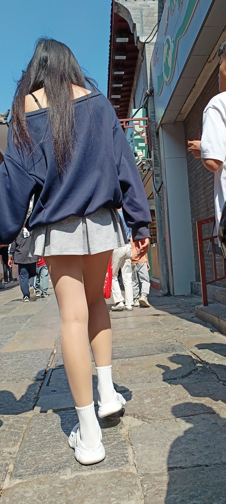 胡同遛弯ootd✨奶牛棉服裹成软fufu的奶团子,黑丝+厚底靴直接把腿长拉满!老
