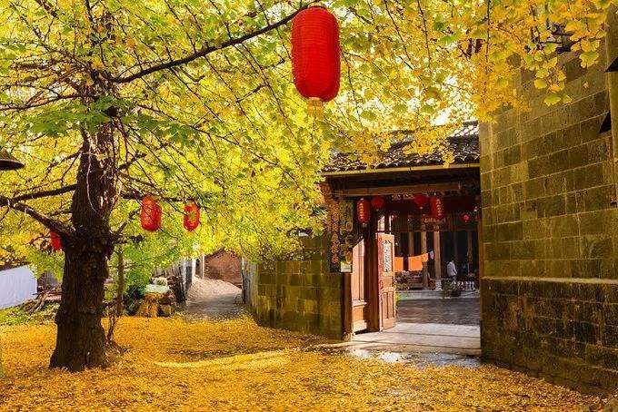 【这里是云南】腾冲的秋天,是银杏村的颜色。房前屋后、瓦片上、小路上、到处是一片金黄。 旅游旅游