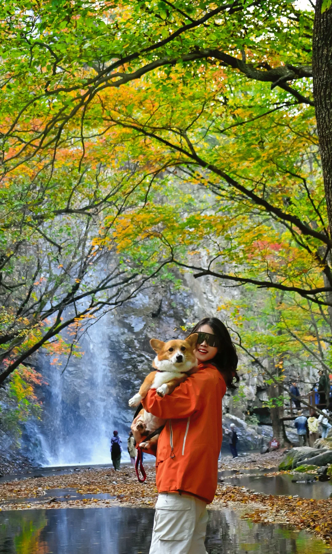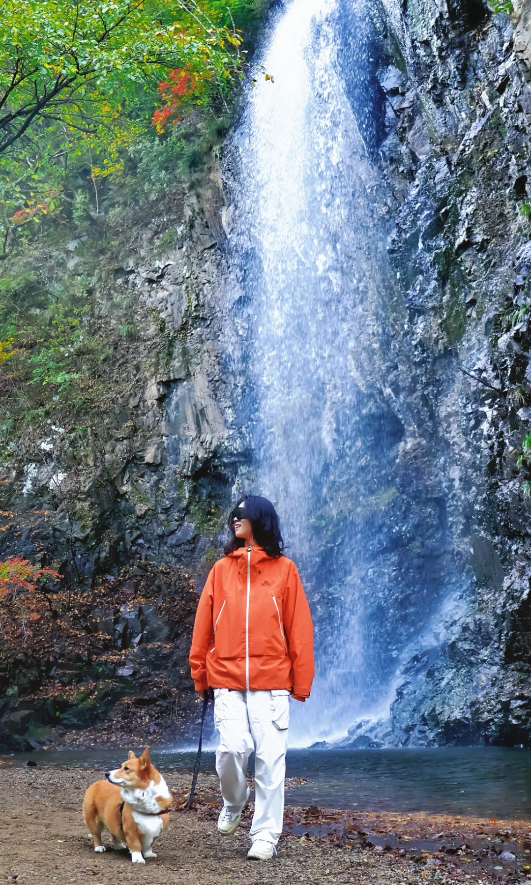 ✅ 萦水湾飞瀑:瀑布从红枫间流下来,枫林飞瀑