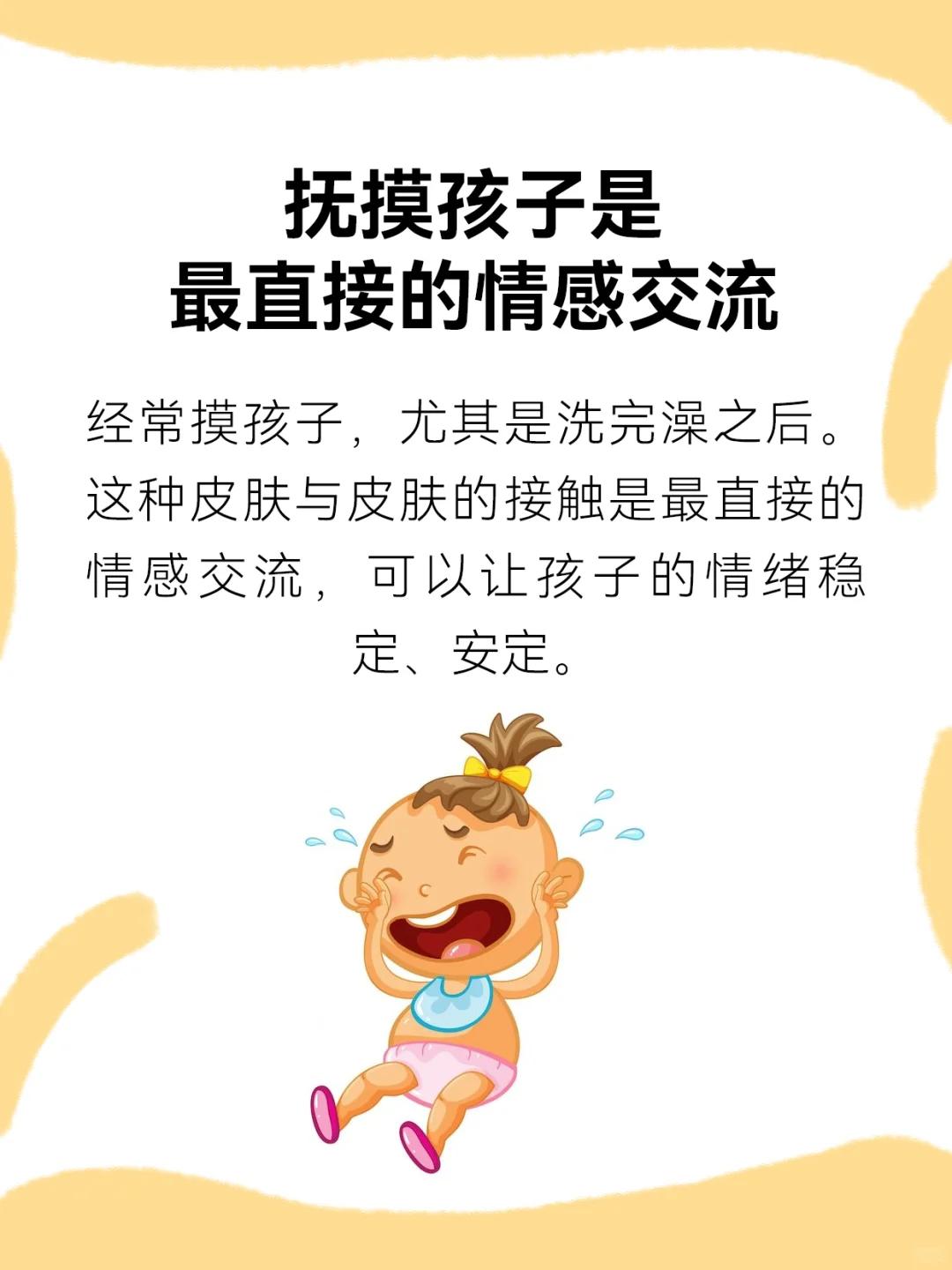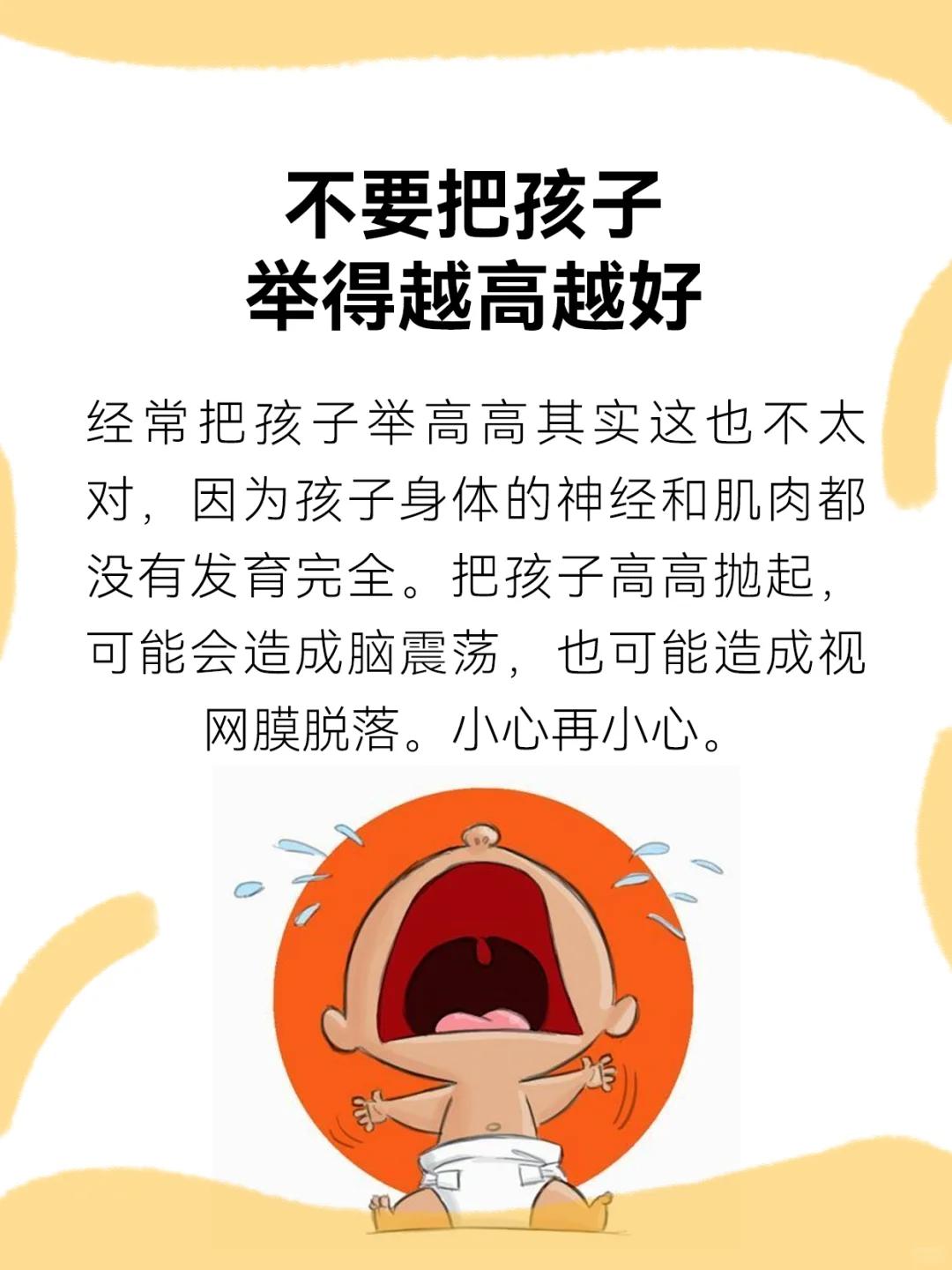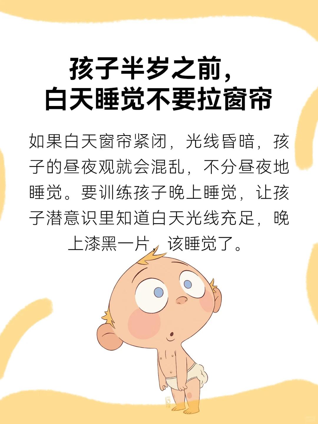 4个很棒的育儿经验分享! 1.孩子半岁之前,白天睡觉不要拉窗帘 如果白天窗帘紧闭,光线昏暗,孩子的昼夜观就会混乱,不分昼夜地睡觉。要训练孩子晚上睡觉,让孩子潜意识里知道白天光线充足,晚上漆黑一片,该睡觉了。 2.不要把孩子举得越高越好 经常把孩子举高高其实这也不太对,因为孩子身体的神经和肌肉都没有发育完全。把孩子高高抛起,可能会造成脑震荡,也可能造成视网膜脱落。小心再小心。 3.抚摸孩子是最直接的情感交流 经常摸孩子,尤其是洗完澡之后。这种皮肤与皮肤的接触是最直接的情感交流,可以让孩子的情绪稳定、安定。 4.如果孩子总是脾气有点暴躁 找不到原因,那不妨看看孩子是不是爱看电视玩手机。一旦不给玩就开始大吵大闹,注意力不够集中。比起冷漠,孩子还是更需要父母的关心和照顾。