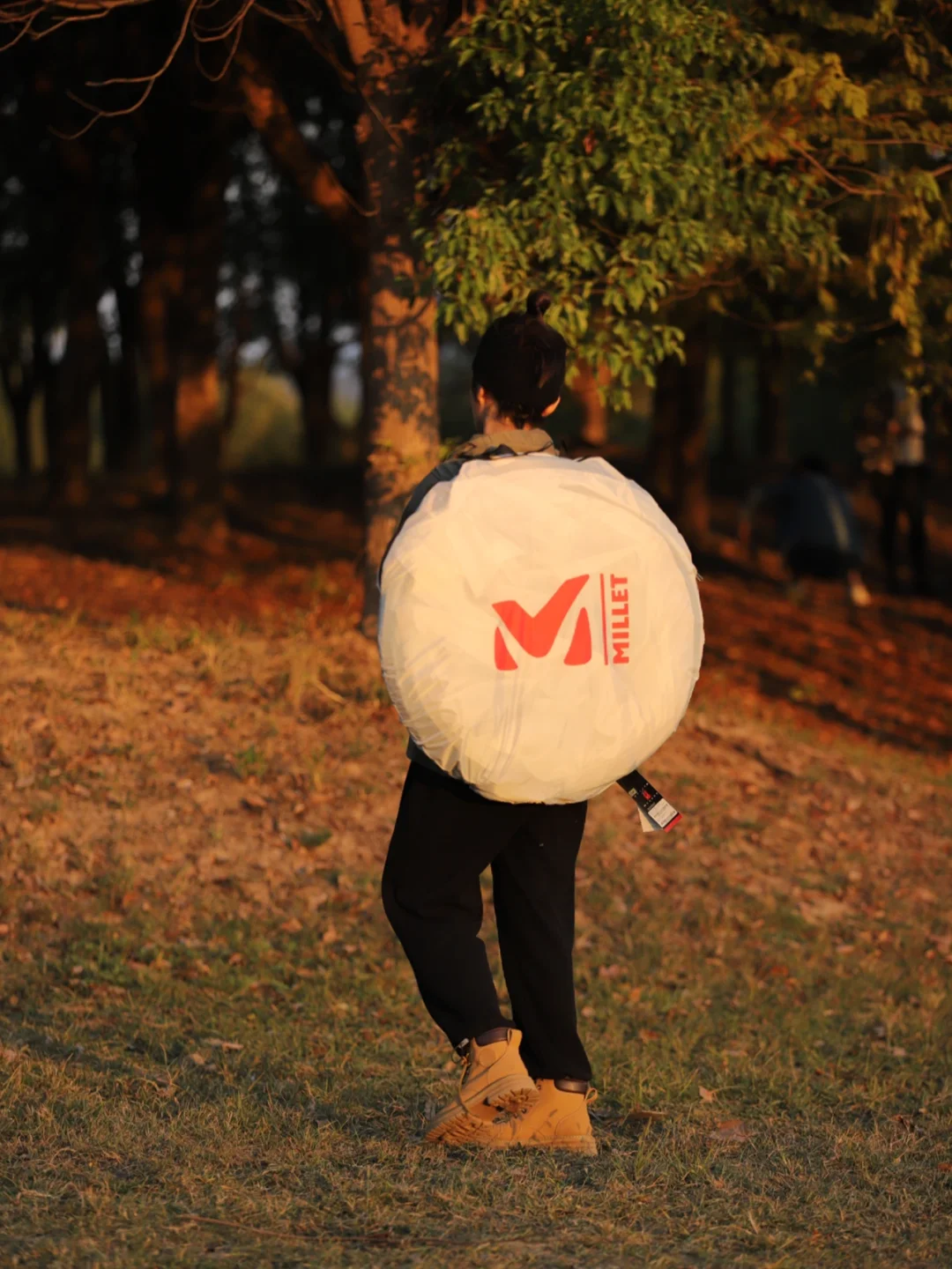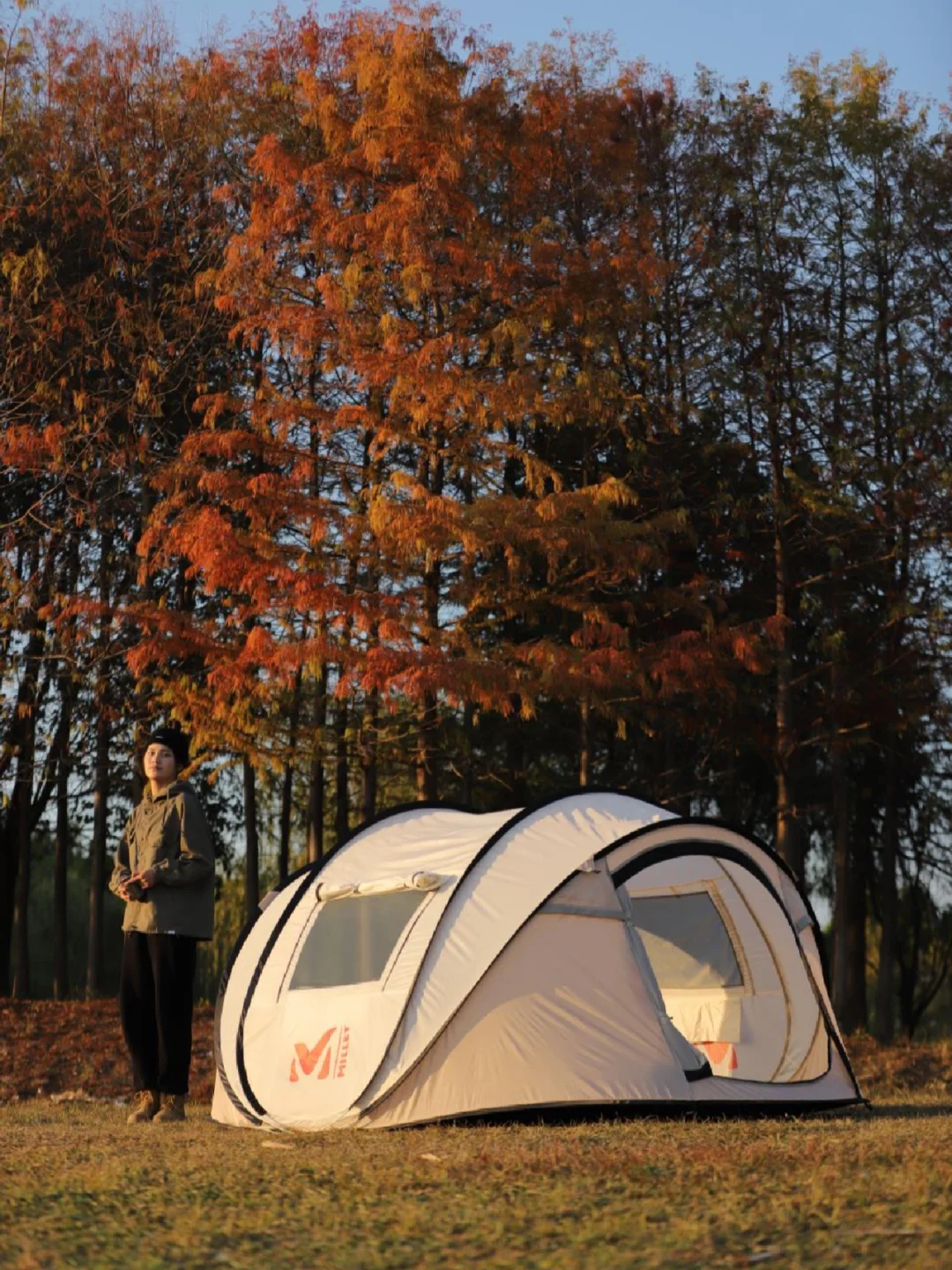 超级轻便,一抛就自动搭建完成了,可以容下3-4人,不过夜的话选个这种足够了,适合轻量化露营,像个白胖子颜值在线