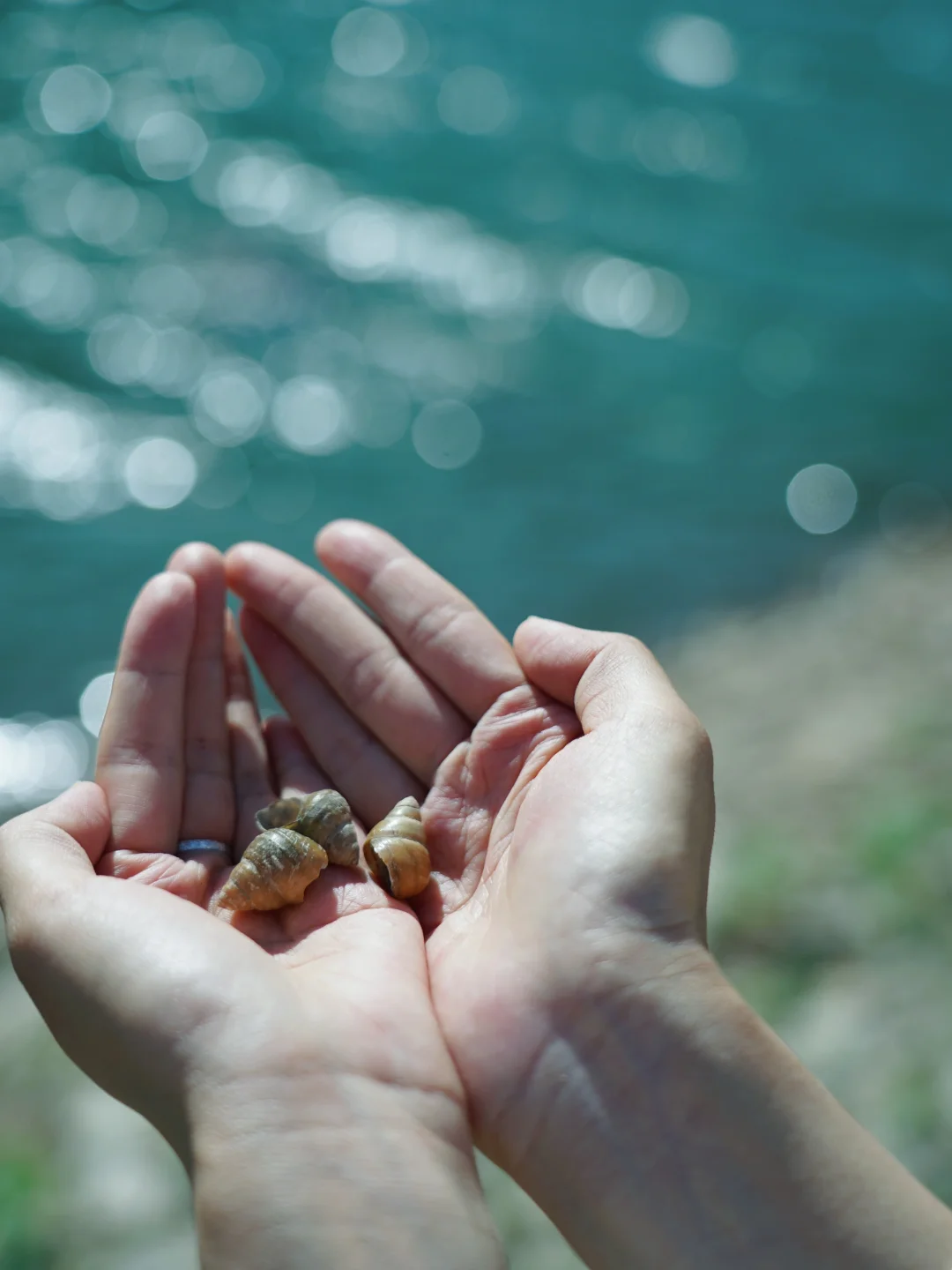 5️⃣水边有小田螺,可以拾贝,适合小朋友玩