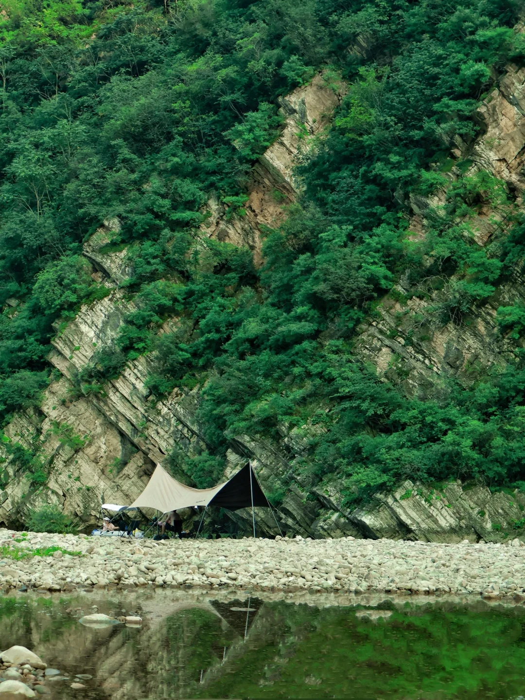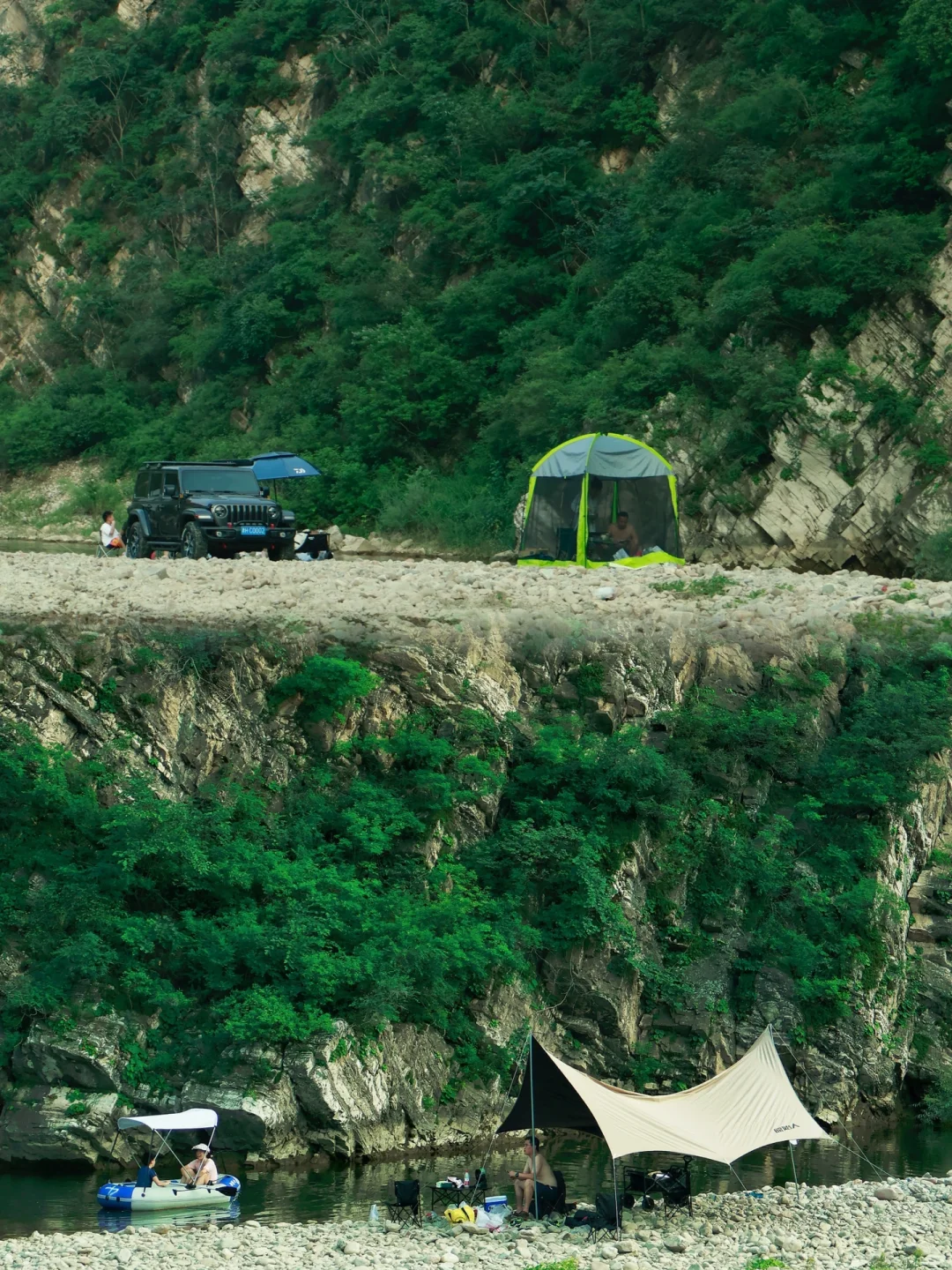 5️⃣可以在水边露营烧烤,车可以直接开到石滩上,在山谷里,石壁的纹理很美