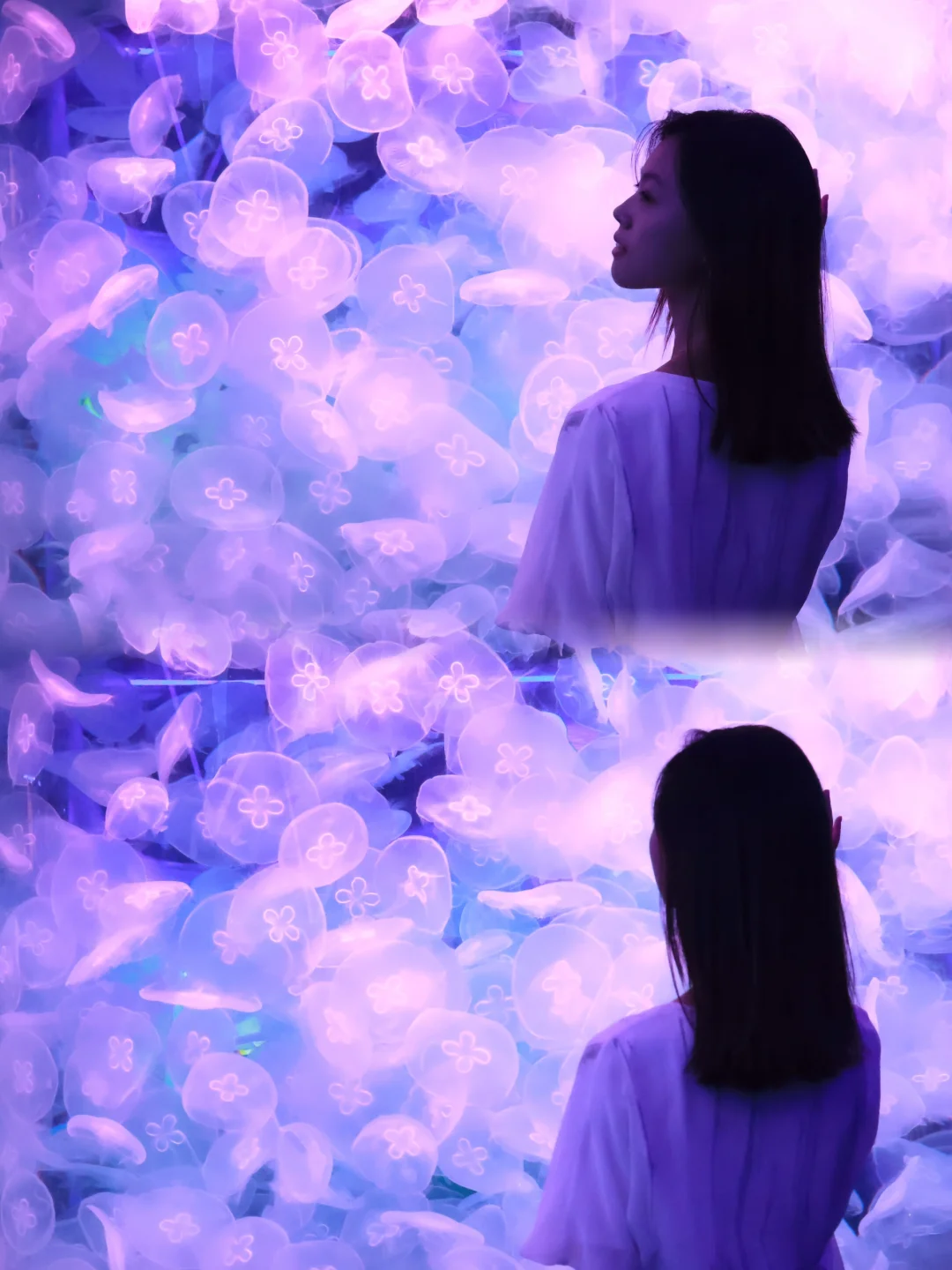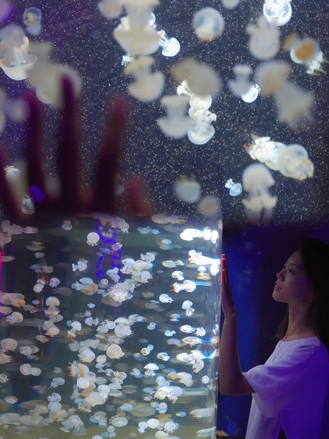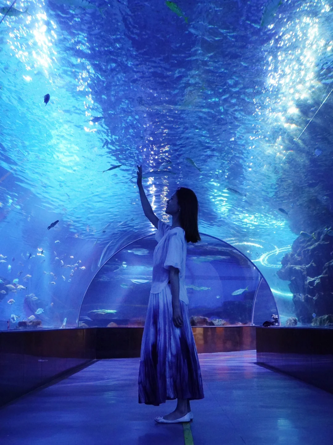 2️⃣机位:海底隧道可以仰拍,蹲下来从下往上,既不会拍到人群还可以拍出全貌