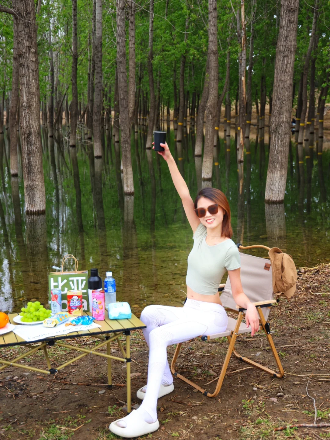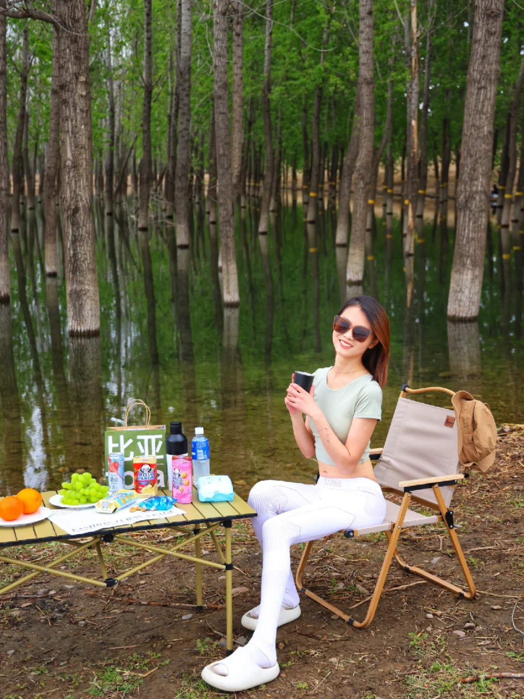 2️⃣ 天气渐渐暖和,大家可以带上拖鞋去踩踩水,还有小鱼在水里,最近买了一双朴西布丁拖鞋,鞋底记忆回弹还很有支撑力,足弓处微微凸起设计更贴合行走习惯,久走不累脚,特别适合露营