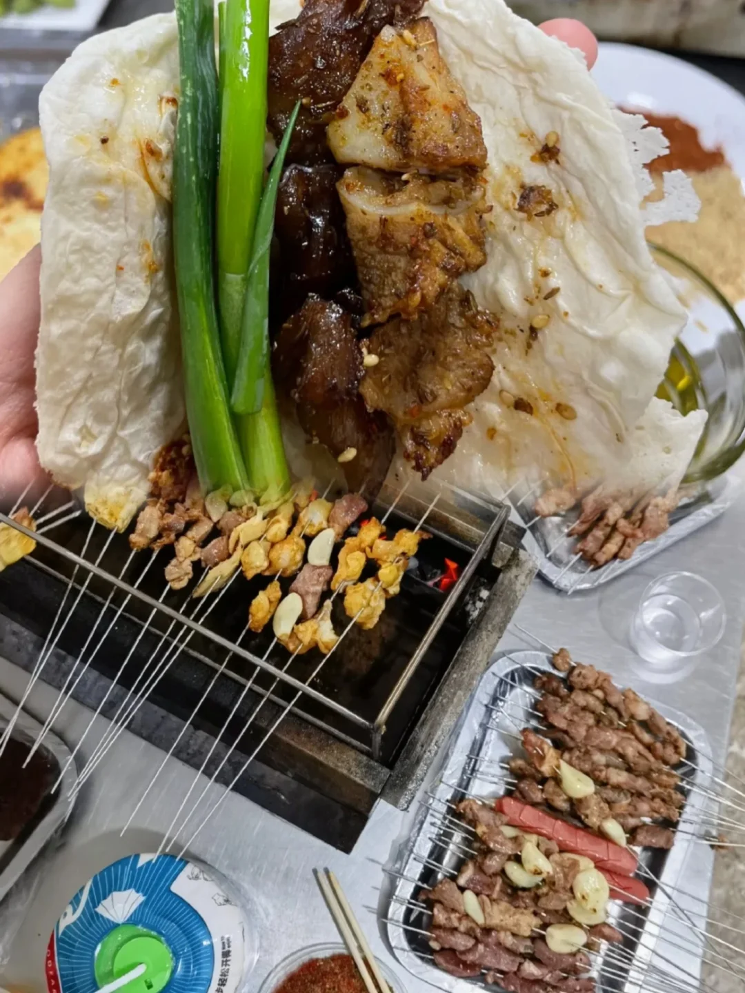 大葱卷饼的烧烤配上山东人豪爽的氛围