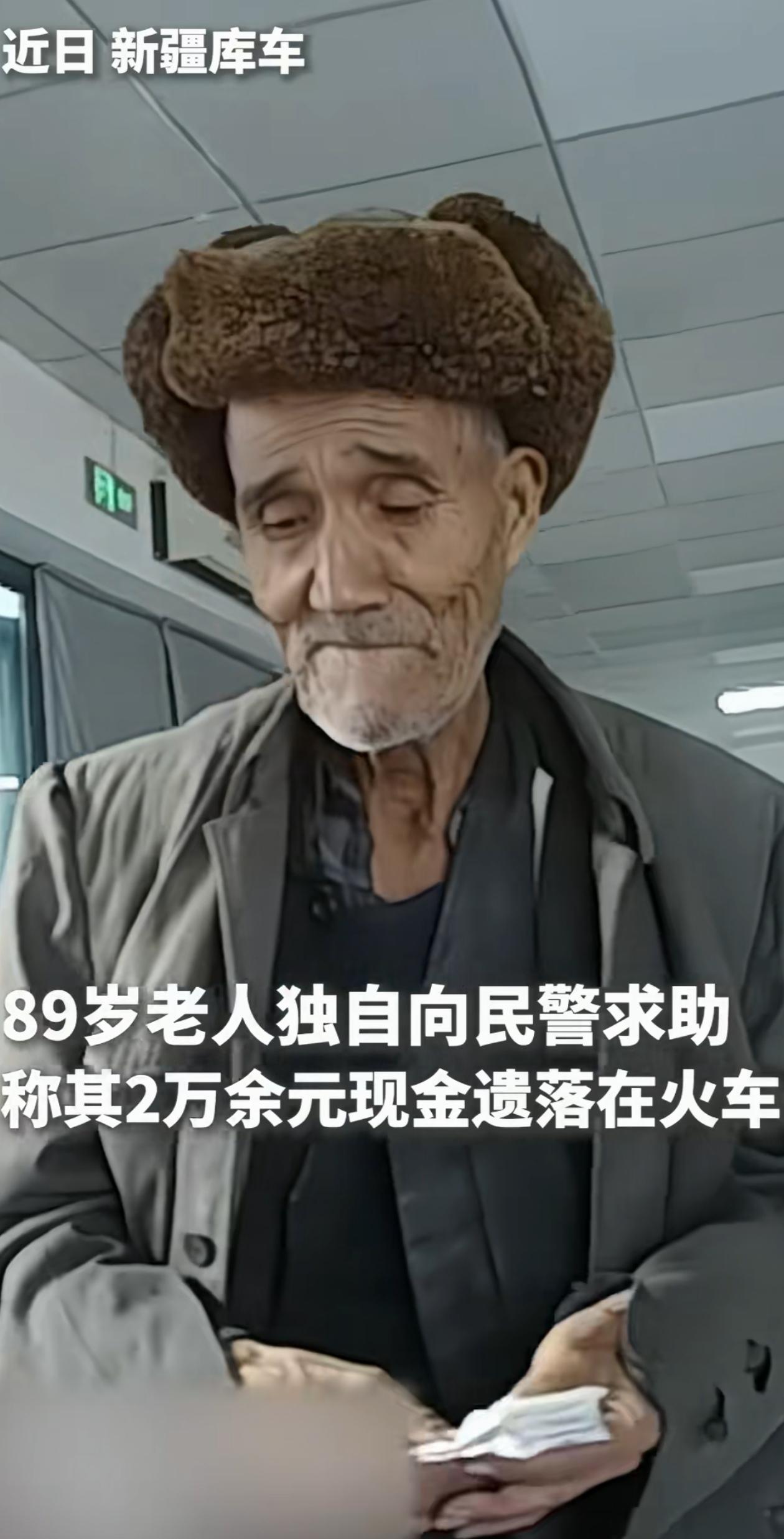 看哭了!新疆库车,89岁老人找到民警求助,哽咽着说自己攒下的两万多块丢在了火车上,现在火车开走了,不知道怎么拿回来。 老人年纪大了,这次之所以带这么多钱出门,是打算去医院看病,治一下这么多年落下的老毛病。 可没想到下车后一摸裤兜,哪里还有钱的影子?老人左思右想,应该是下车的时候落在了车上,但自己又回不去了,就只能求助民警了。 民警知道老人能攒下这么多钱不容易,所以立刻联系了老人乘坐的车次,乘务员找寻后还真的发现了一笔两万多的现金,双方当即约好,明天列车返航,民警就立马去取钱。 由于需要等一晚上,民警还贴心地带老人去住宿,怕老人身上没钱,民警还要主动垫付房费。 让人感动的是,酒店知道了这个情况后,连民警的钱也没有要,说这笔钱自己帮忙免了,也算是做一份贡献。 在经过一夜的等待后,这笔钱成功被交还到了老人手中!因为老人着急回家看牲畜,所以没法久待,民警又特意送老人回家,还叮嘱他一定要把钱看好了。 说实话,民警的行动特别打动人,他们不仅主动帮忙找钱,还管了老人的住宿和一日三餐,这恐怕已经超出了正常的范畴!可他们毫无怨言,完全是把老人当成自己的亲人那样对待,这何尝不是“老吾老以及人之老”的生动体现? 可另一方面,89岁的老人啊,这么大年纪了,总不可能没有个一儿半女吧?要是他的子女能够抽空陪老人出去走一趟,路上有个人照应,或许也就不会发生这样的事情了。 你觉得应该让上了年龄的老人独自出远门吗? 八旬老人遗落多年积蓄 民警帮找回