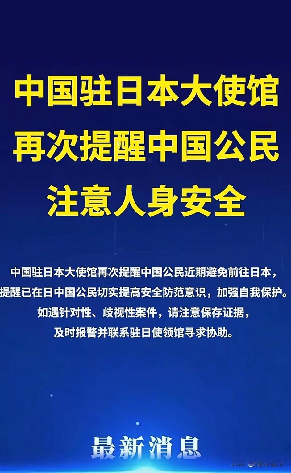 快讯!快讯! 国防部和驻日大使馆同时发声警告! 感觉好像要真的来了,话越少信息量越大呀!特朗普和高市早苗两个人一个唱红脸一个唱白脸,故意拖延时间在做充分的准备吧! 11月27日,国防部发言人蒋斌大校在例行记者会严正回应:台湾问题纯属中国内政,与日本无关,日方部署实为“妄想军事介入台海,重蹈军国主义覆辙”。话说的很明白日本如果胆敢介入必定揍你。 随后驻日大使馆也紧急发声,再次提醒在日公民注意人身安全,并提醒大家不要前往日本,在日人员尽早回国,话说的很明白日本危险了,大家应该认清楚局势。 高市早苗在日本的支持率高达80以上,特别是在年轻人里,拥有极高的支持率。这也说明日本大部分人都是同意高市对我们武力介入的。 不要把日本的国民设想的多么通情达理,不要心存幻想。历史上的战争,他们的老百姓都是绝对支持政府的,他们的坏是长在骨子的。高日早苗 日本军事挑衅 日本对华态度 中方正告日本