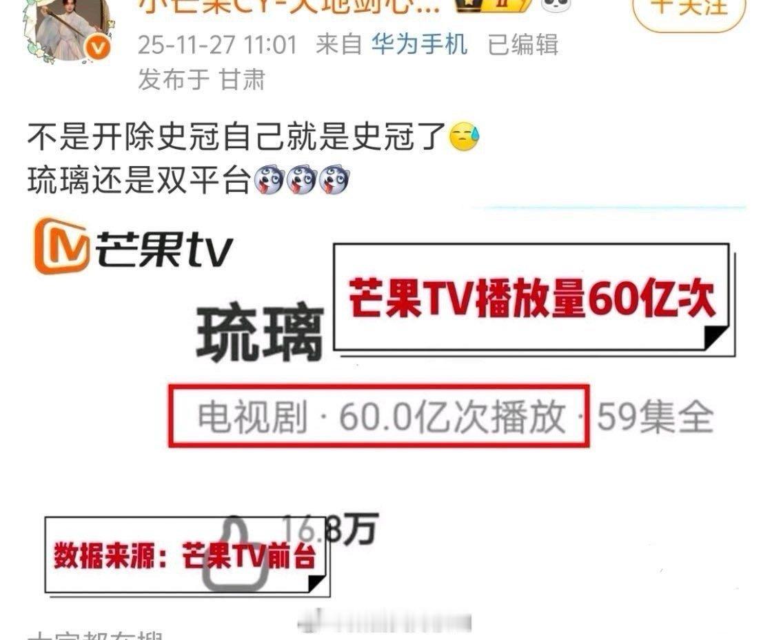 你吹你是芒果云合集均播放量史冠,我吹我是芒果猫眼有效总播放量史冠,感觉都没什么问