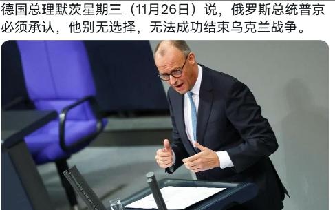 德国总理默茨把话说得很硬。    11月26日,他公开表示,俄罗斯总统普京必须