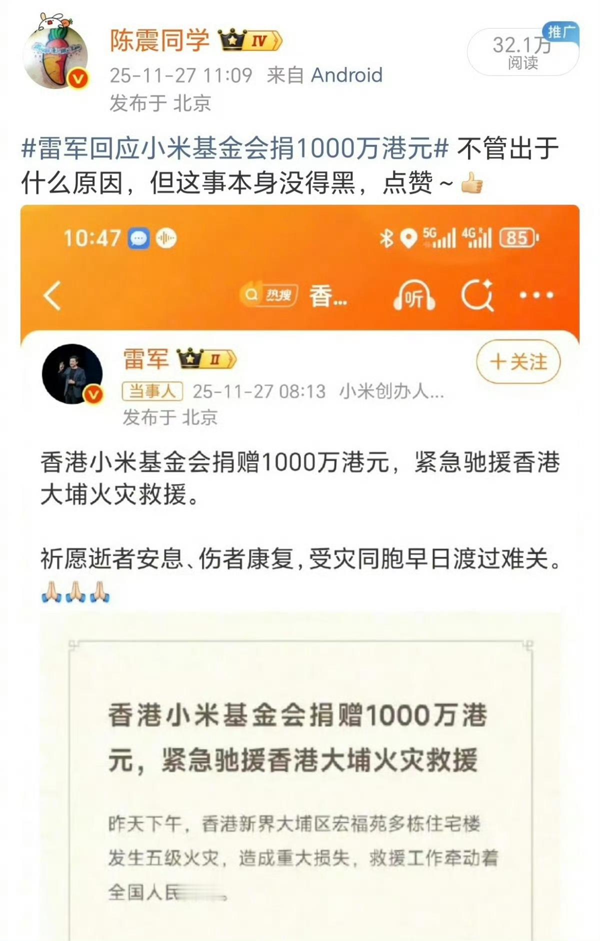 陈震 小米 陈震向来对小米和雷军有偏见,但没想到偏见这么大,捐款也能被说一句“不管出于什么原因。”另一个车圈顶流韩路则截然相反的态度。