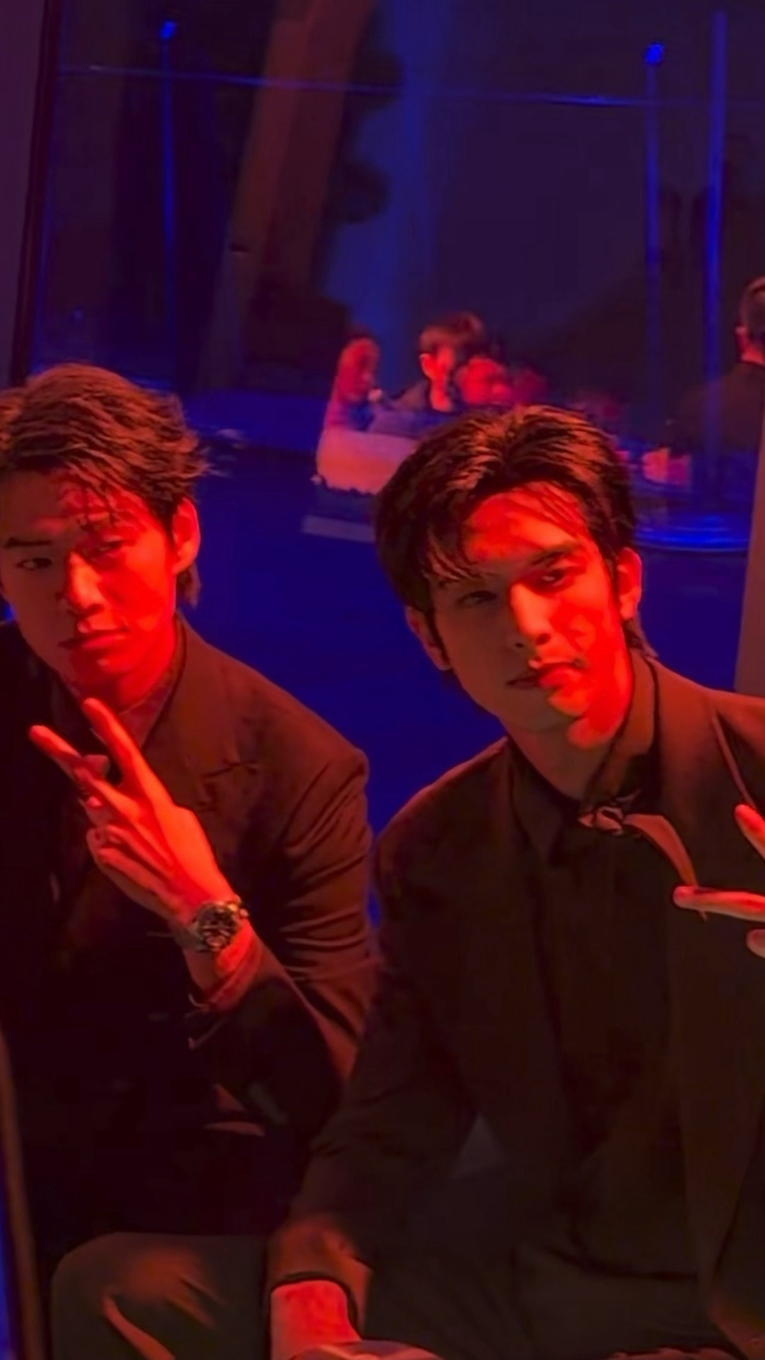 不知道在聊什么只看到了帅帅的两张脸帅哥同框就是养眼!魏大勋宋威龙同框聊天