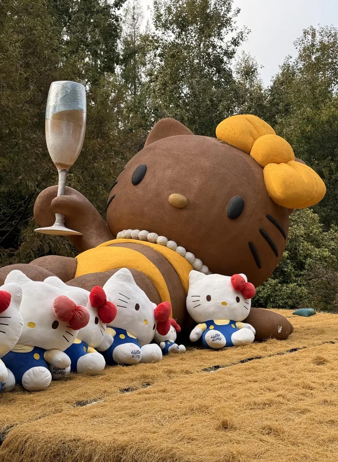 在杭州千万不要来 因为真嘟太出片啦!!! 杭州人民有属于自己的kitty茶山 和巨大的黑皮Kitty 也太好拍了 完完全全的kitty脑袋来拍照了 kitty kitty控