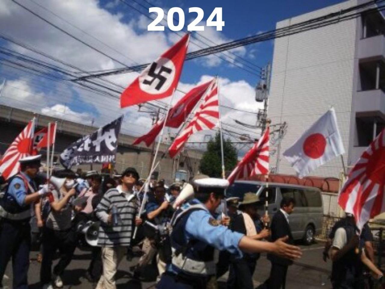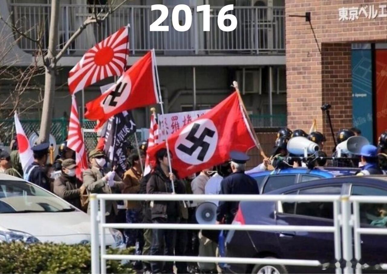 在日本街头,纳粹旗和日本军旗同时出现在街头,是很多年的事了,邪恶的军国主义一直在