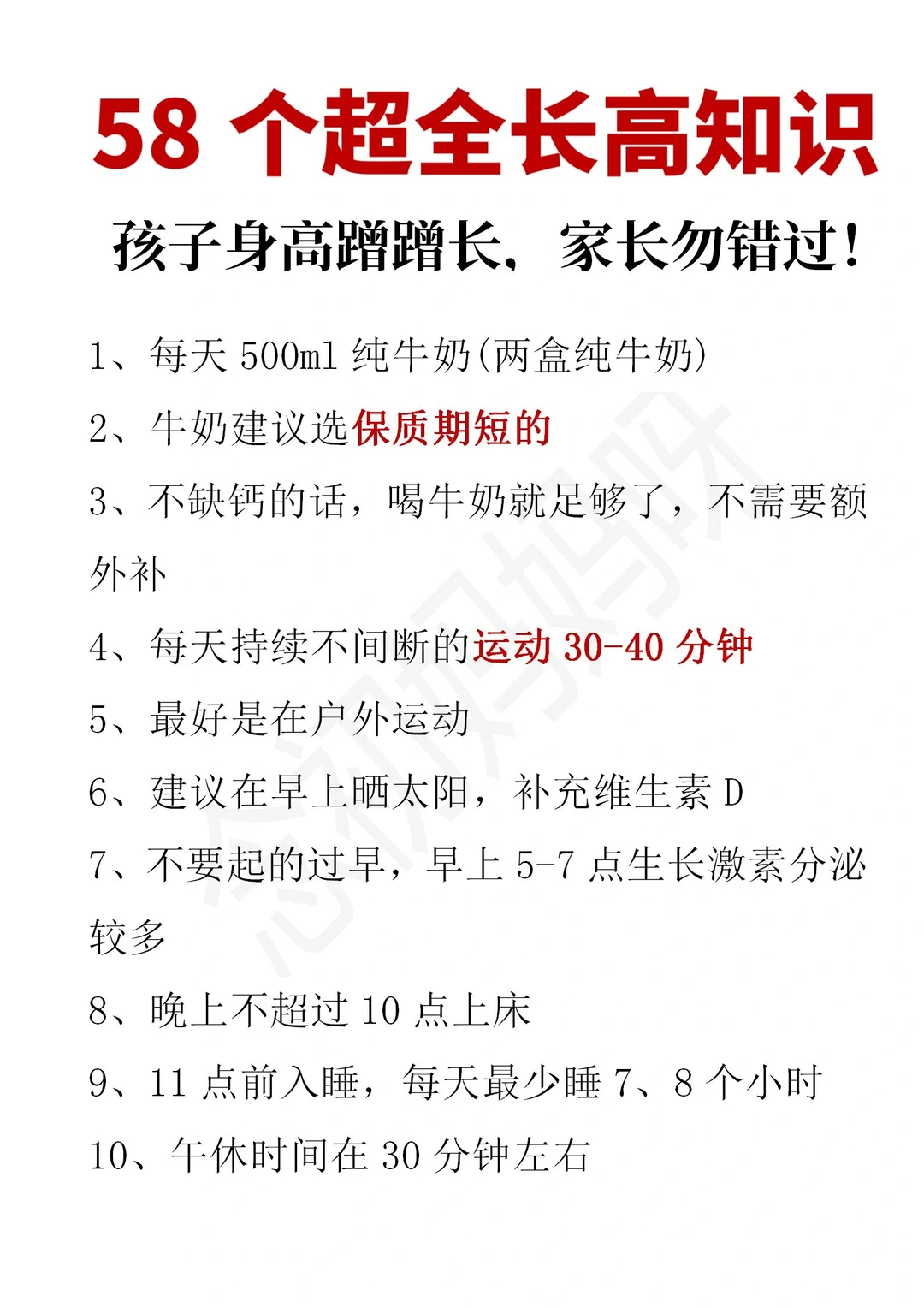 孩子长不高是多少父母的难题,宝宝身高发育不达标的、达标了还想更高的、以及遗传身高不理想的,这里有一份长高秘籍,宝妈们快收下✨