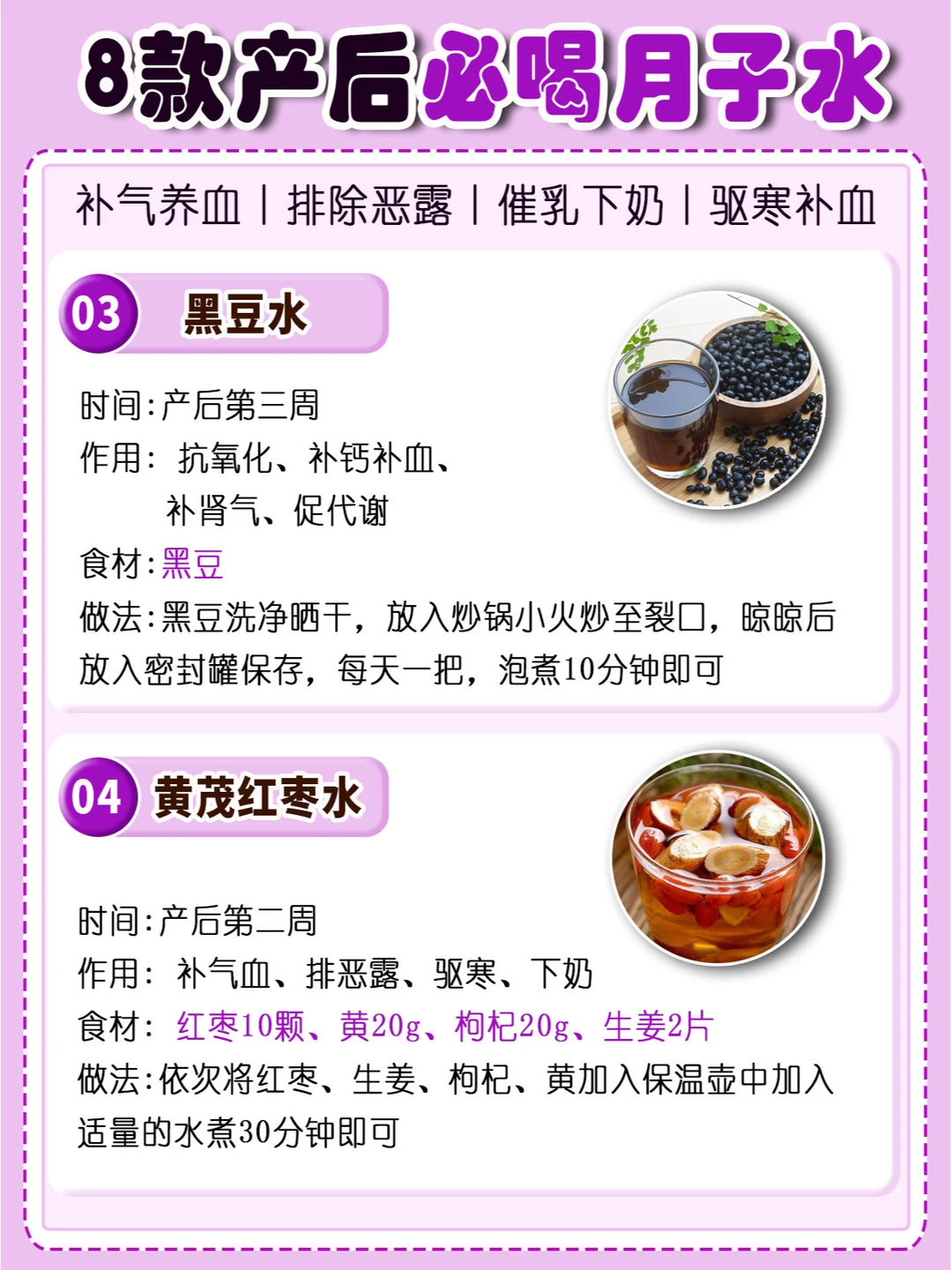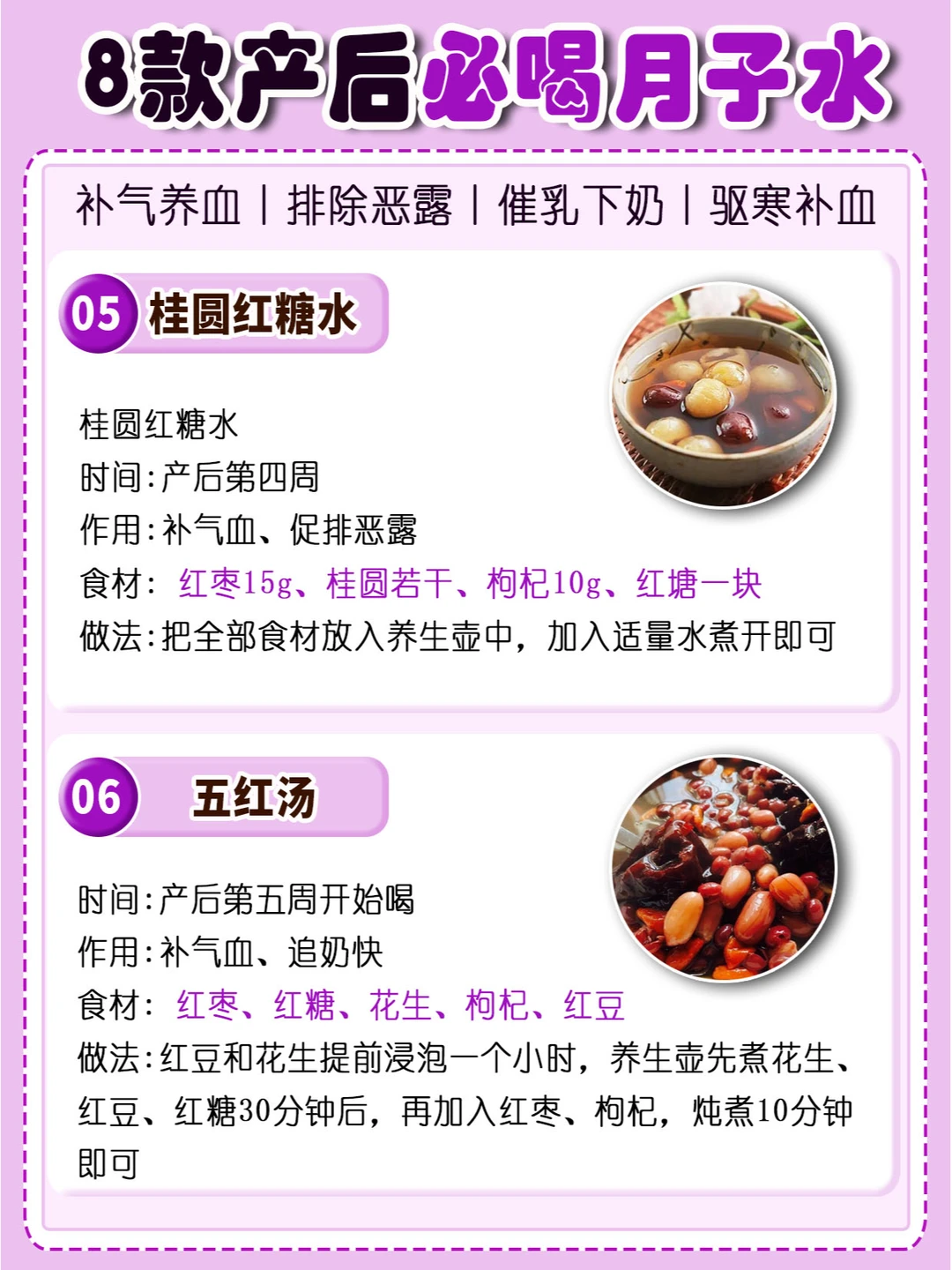 作用: 补气血、排恶露、驱寒、下奶食材: 红枣10颗、黄20g、枸杞20g、生姜2片