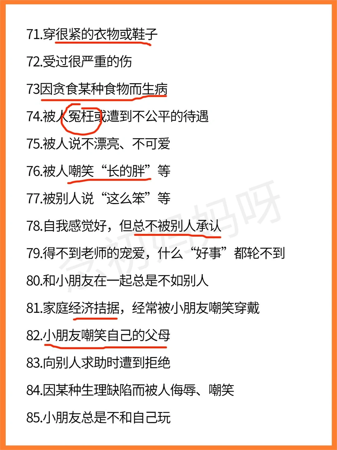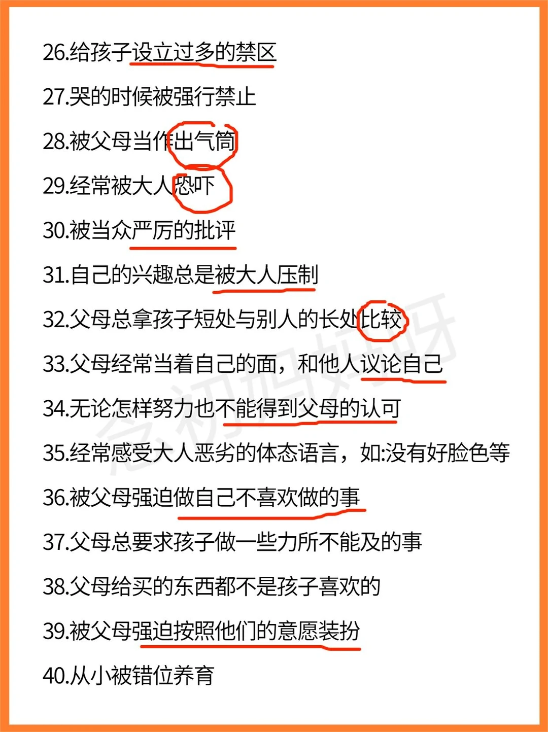 有点离谱但合理 [星R]作为父母,我们需要明白,我们的言语、行为有可能会对孩子造成什么样的影响,将伤害的因从自己身上停止。让孩子成为一个身心健康的人。 [星R]当我们作为一个孩子时,还没有成长到学会处理情绪、疗愈创伤,我们对身边发生的一切都毫无抵抗能力,一些在成年人看来微不足道的突发事件,就有可能对我们造成伤害。 [星R]而且通常,我们自己是感知不到的。一些孩子长大后甚至会因此产生各种心理问题、患上不同程度的精神疾病,如恐高、抑郁症、焦虑症等。