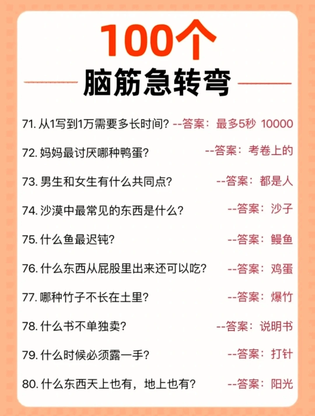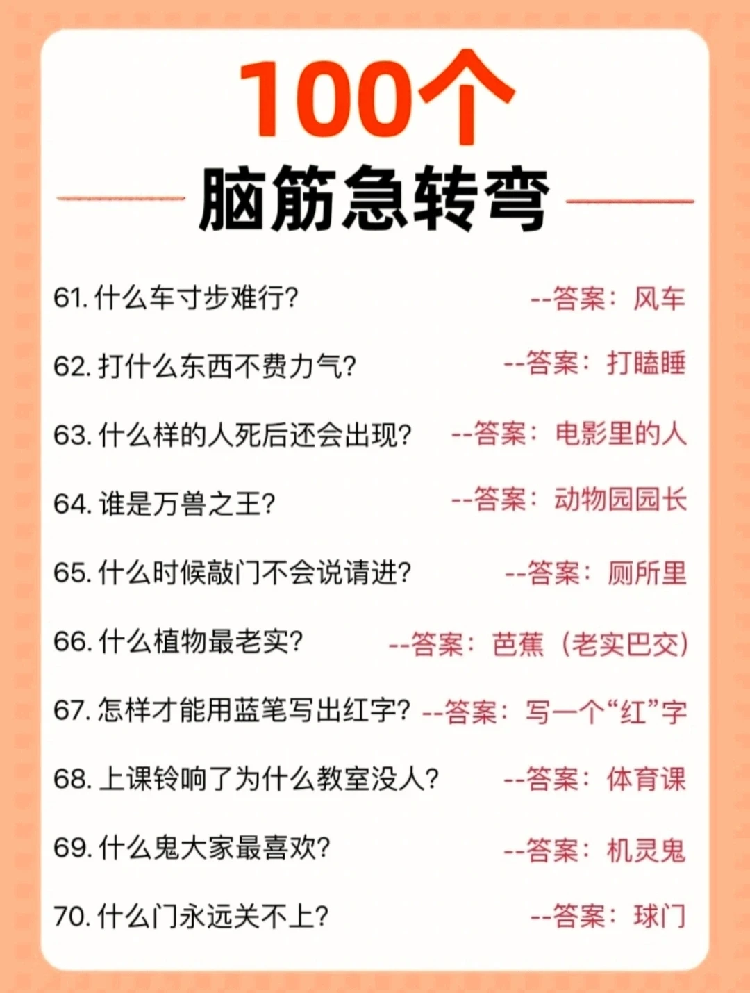 “脑筋急转弯”之所以受到孩子们的喜爱,主要因为它具有满足孩子成长需要的特点:
