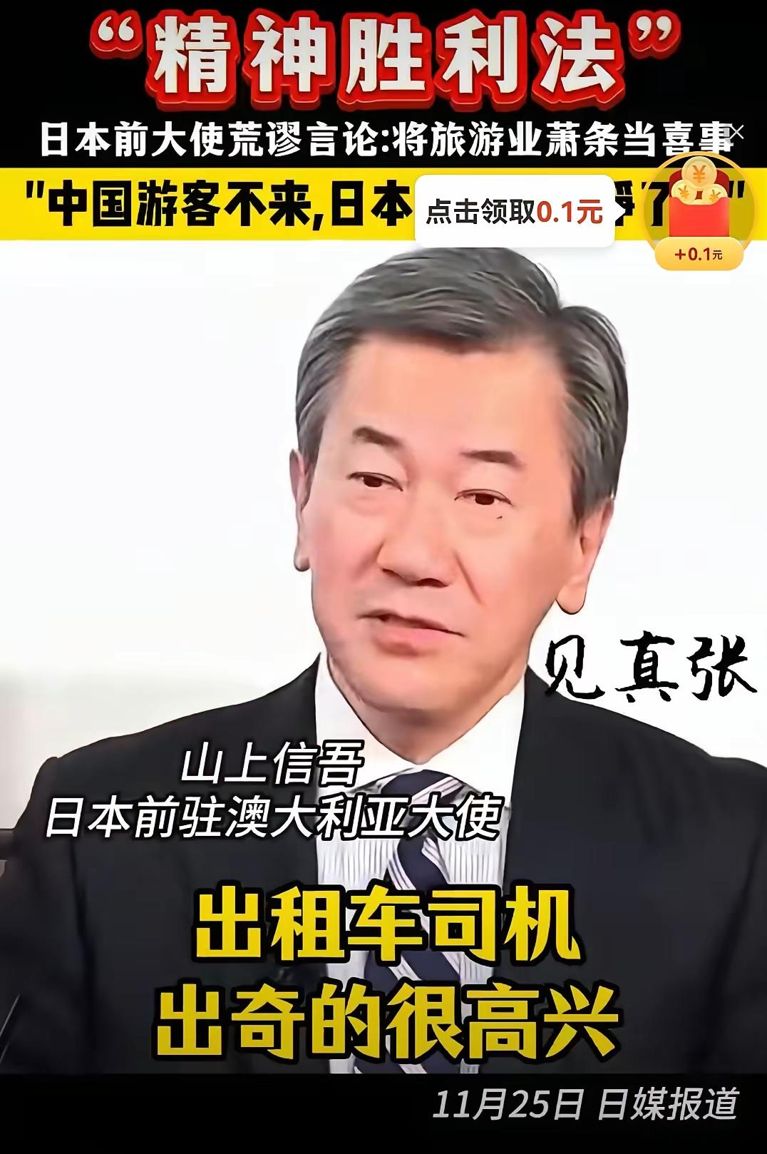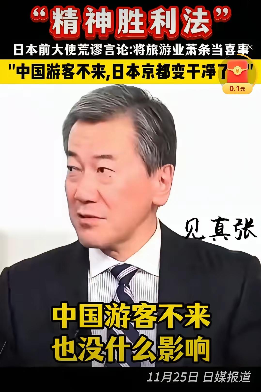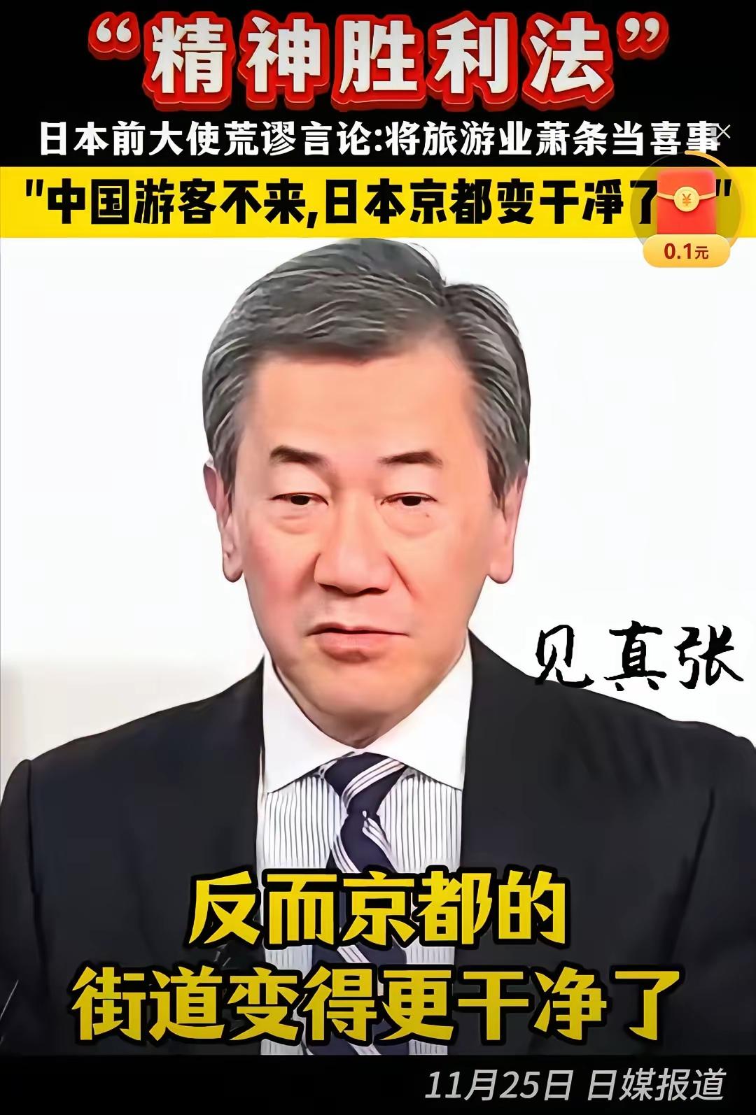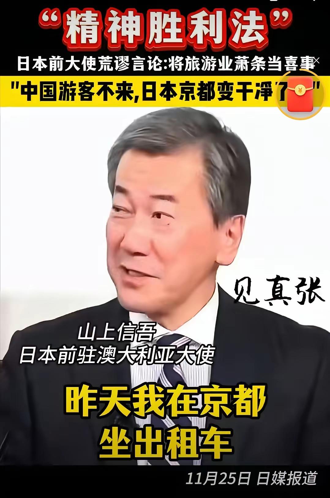 日本前驻澳大利亚大使山上信吾在一档电视节目中称,他在京都坐出租车时和司机交流。 日本出租车跟他说中国游客来不来都不影响他的生意,中国游客不来反而让街道变得更加干净。 主持人配合着说到,街道干净更重要。 日本这种精神胜利法让人恶心。 去年中国游客在日本花了1兆7335亿日元。 占日本旅游收入的21.3%,近700万中国游客去日本消费。 中国游客在日本的衣食住行,购物消费,至少养活了几十万日本人。 如果中国游客不去,日本全年GDP得被拽下去0.36%,光经济损失就2.2万亿日元,这可不是小数字。 现在中国游客不想去,日本人不正视自己的错误,反而诬陷中国游客弄脏了他们的街道,使劲抹黑中国游客。 这就是日本人的真面目。