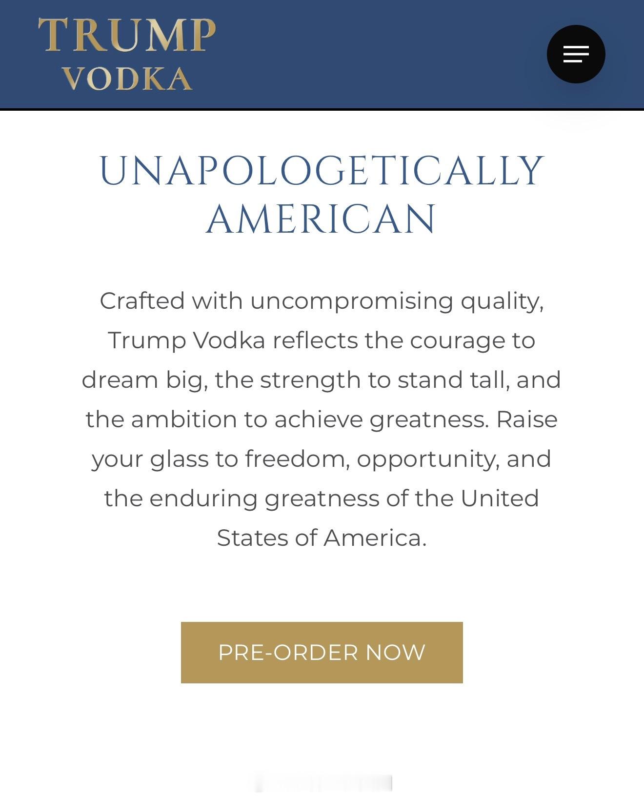 不是段子,川普开始卖伏特加,开始预售,$47.45一瓶。海外新鲜事www.tr