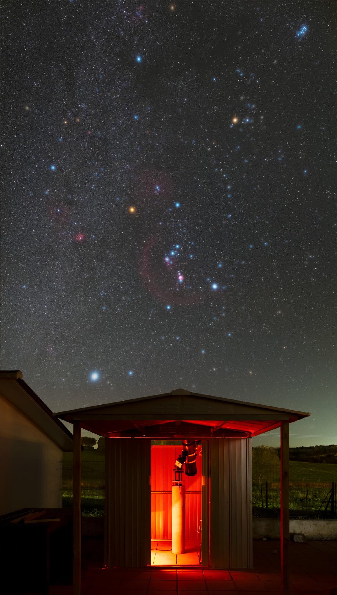 天文爱好者和他的陆地“小哈勃”。白天, David Cruz是一名数字设计师。到了夜晚,他会创作更宏大的作品 —— 宇宙本身的影像。多年来,David的天文摄影设备不断升级迭代。起初,便携性是重中之重,住在城市里意味着每次拍摄都要前往乡村。“真正改变局面的是我入手了 AM5 谐波赤道仪,” 他说,“这让我减少了 10 公斤的携带物品,而且性能好得令人难以置信。” 后来搬到乡村后,David搭建了永久天文台设备。