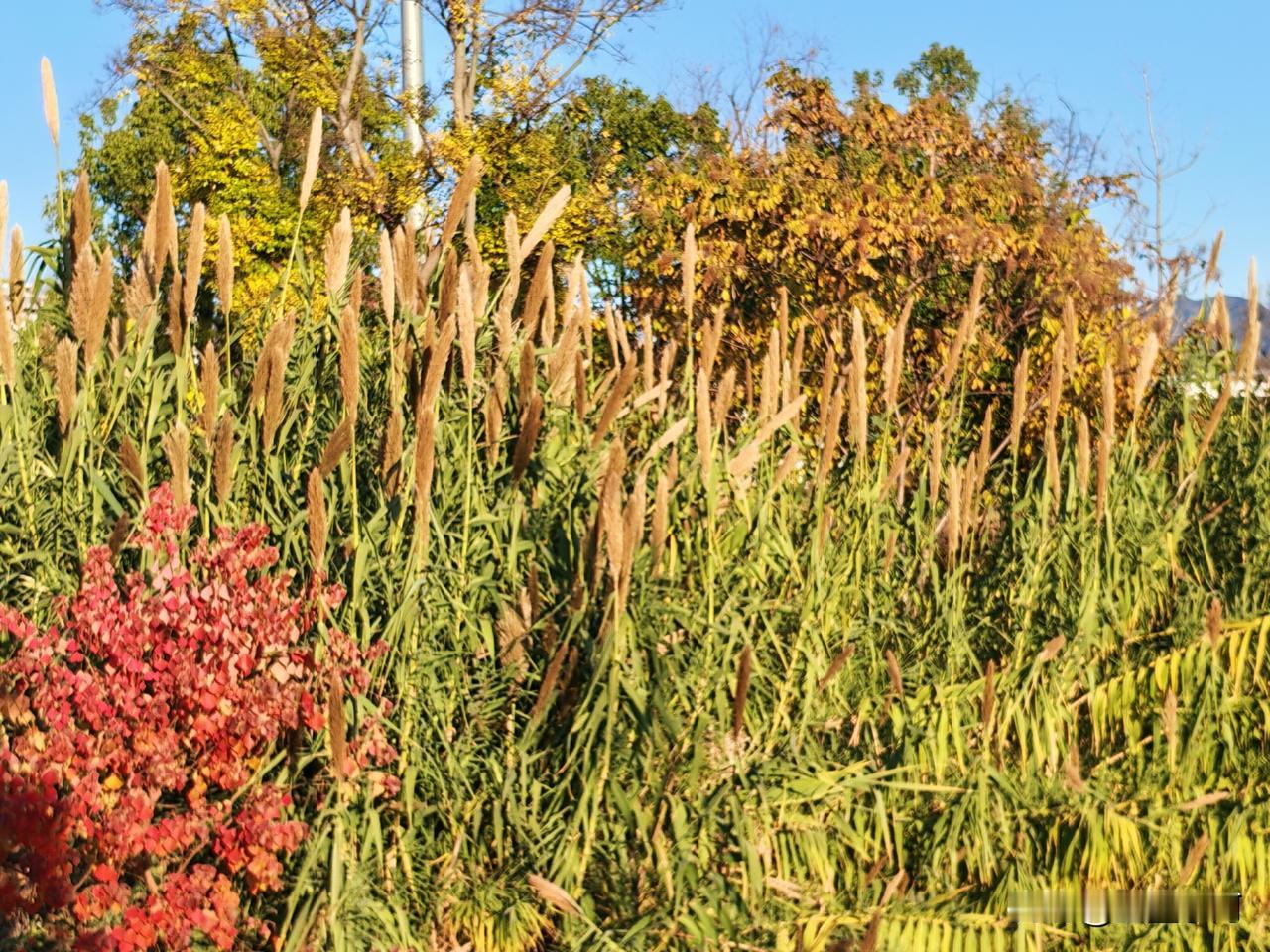昨天下午淳安后湖看到一种芦苇,美不胜收,写一首五言顺口溜赞叹之! 远望芦苇立