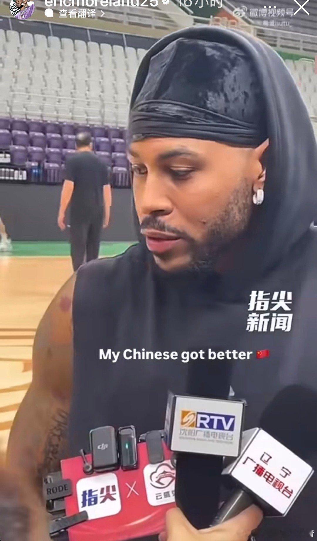 辽宁男篮莫兰德 大莫转发沈阳晚报的采访,说自己中文越来越好了That’s true!