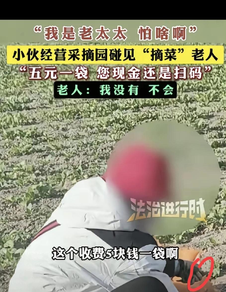年纪从不是“耍无赖”的挡箭牌,尊重从来都是双向奔赴的事。 北京小伙客气询问偷摘蔬菜的老太太是否付费,换来的却是“没有,不会”和“我70多岁了”的理直气壮。这种把年龄当特权,无视他人劳动成果的行为,根本不是该被包容的“老人常态”。 尊老爱幼是传统美德,但这份尊重得建立在相互体谅的基础上。不能因为自己年长,就觉得别人该无底线退让,更不能把占便宜当成理所当然。真正的长辈风范,是懂得尊重他人的付出,而不是仗着年纪消耗社会的善意。 少数人的失范行为,只会加剧代际隔阂,让本该和谐的关系出现裂痕。 你觉得面对这种情况,该如何平衡尊重老人和坚守原则?